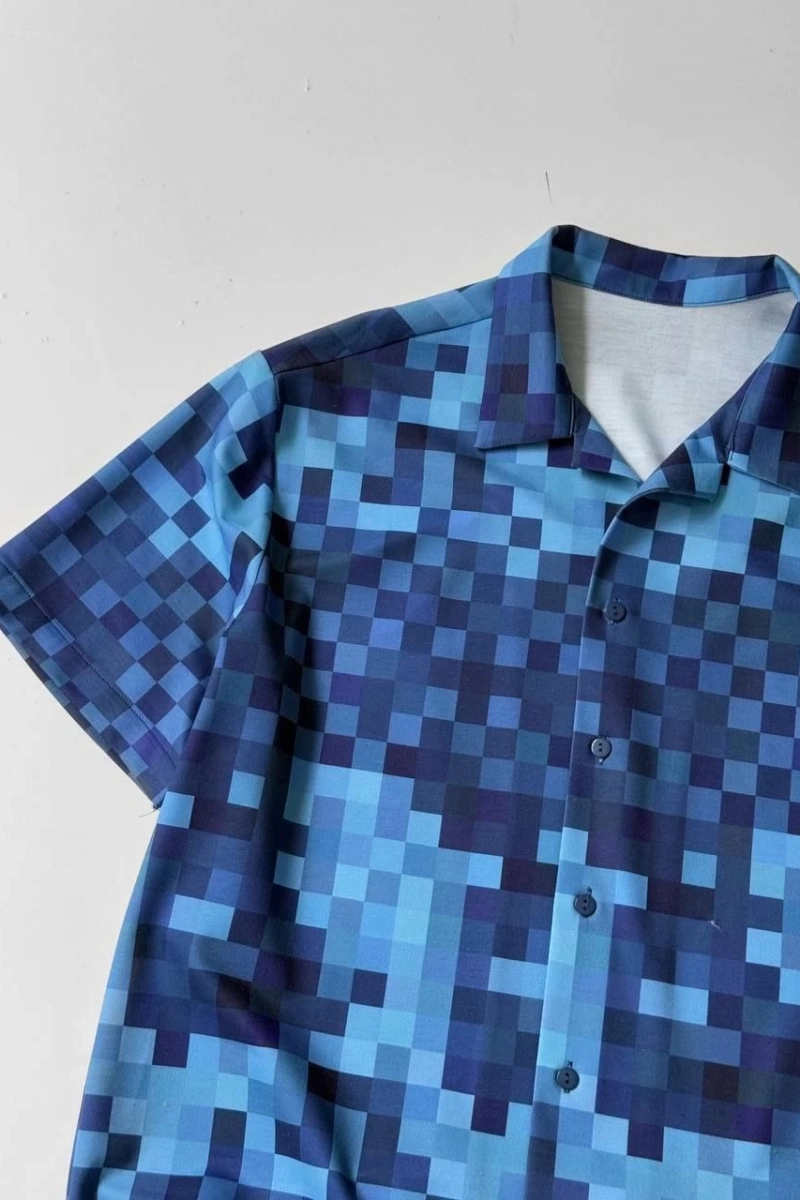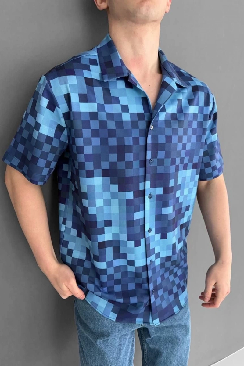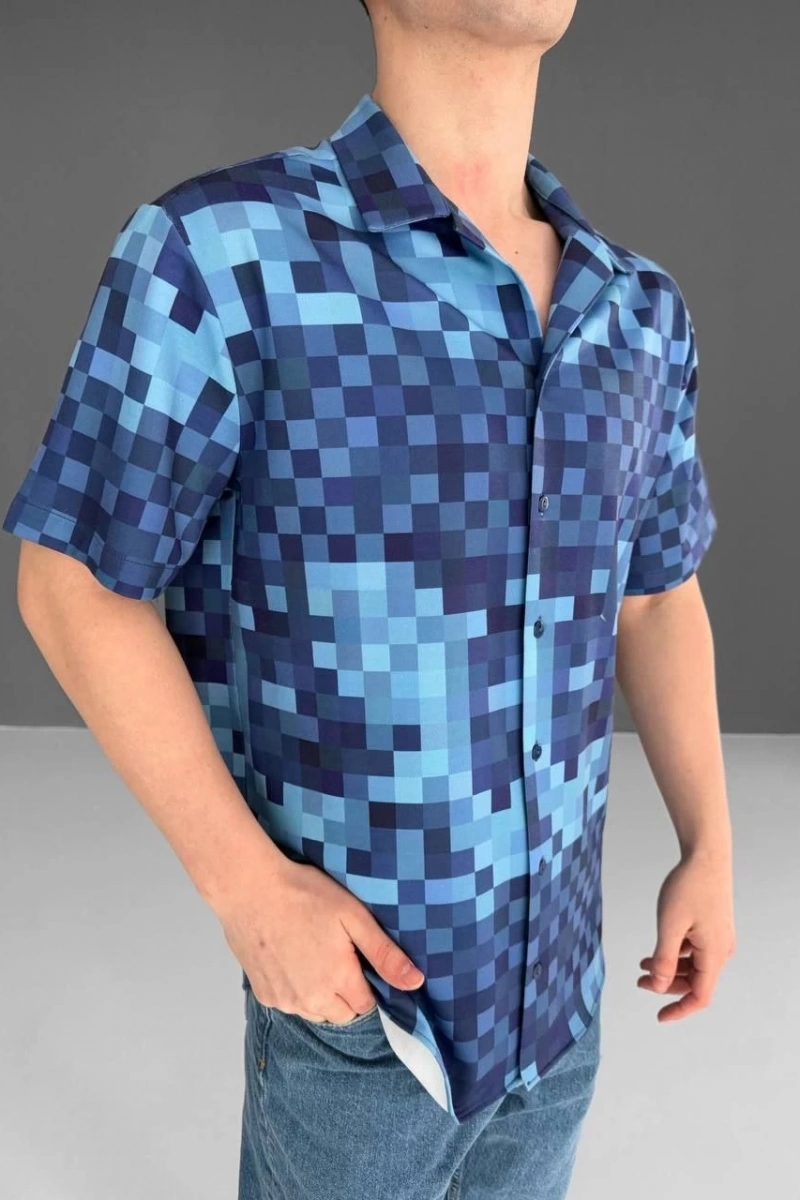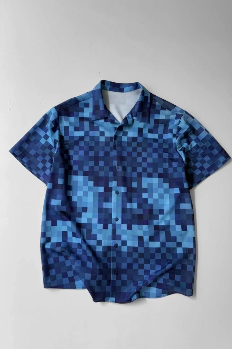 İki İplik Kumaş Baskılı Gömlek - Mavi