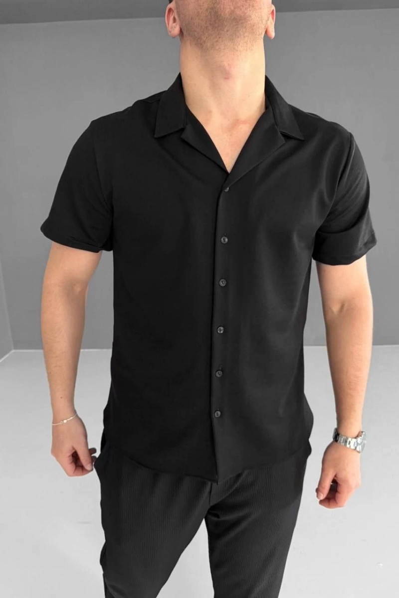 İki İplik Kumaş Gömlek - Siyah