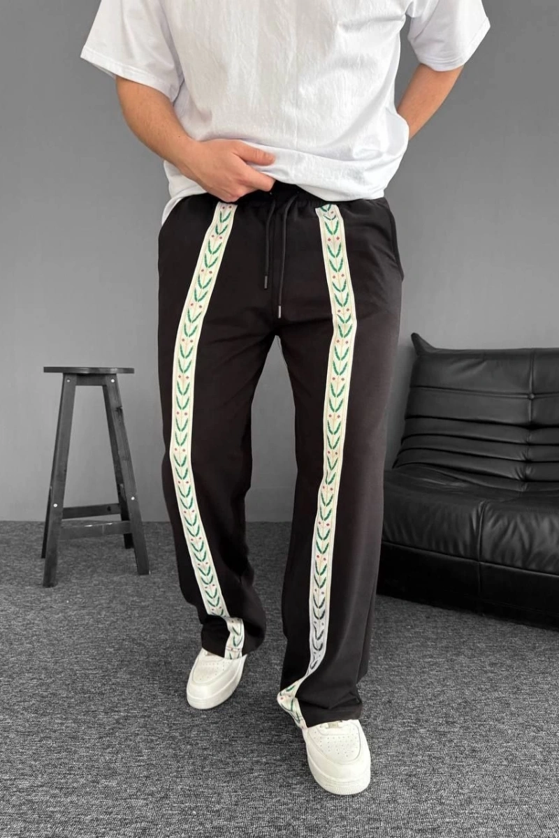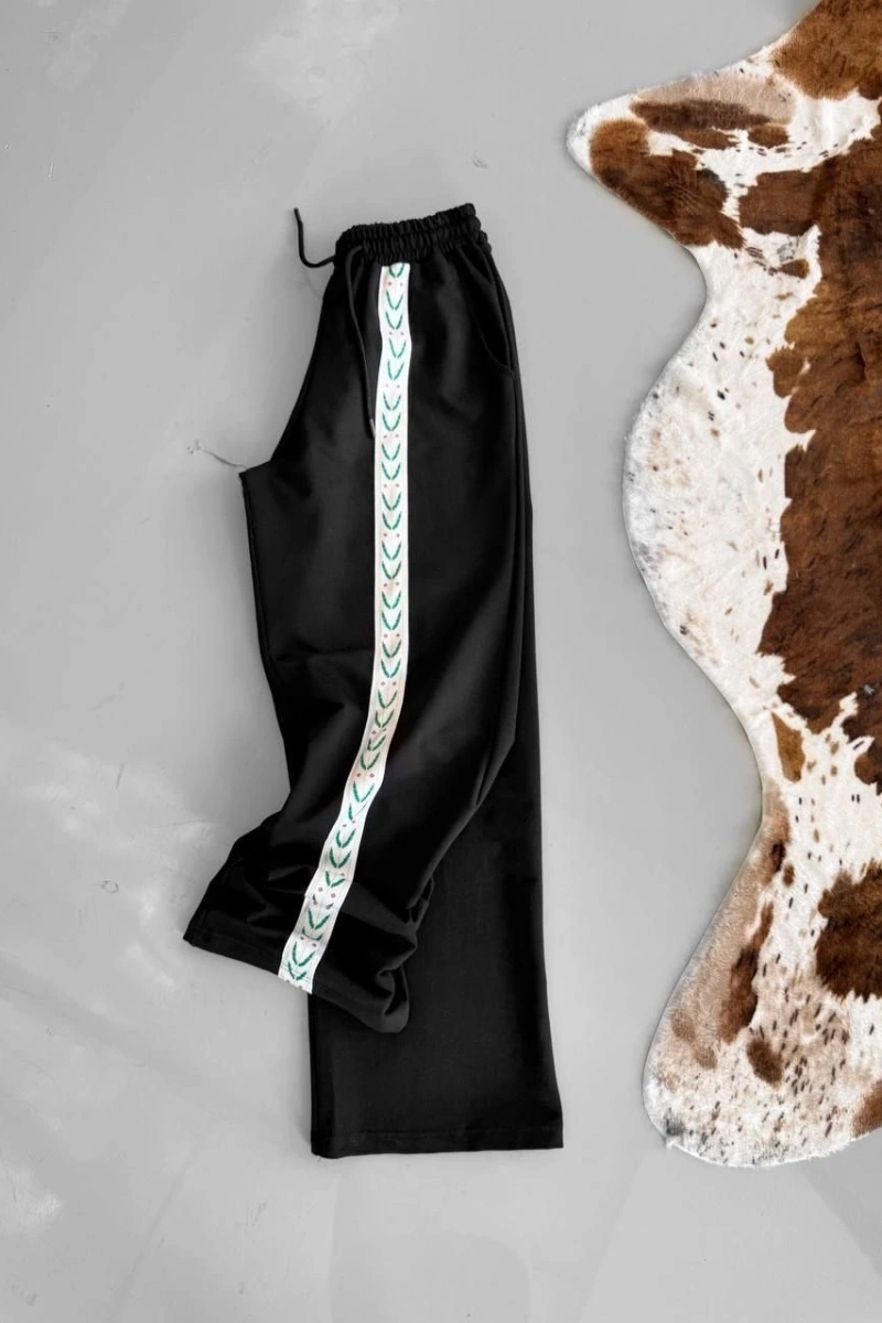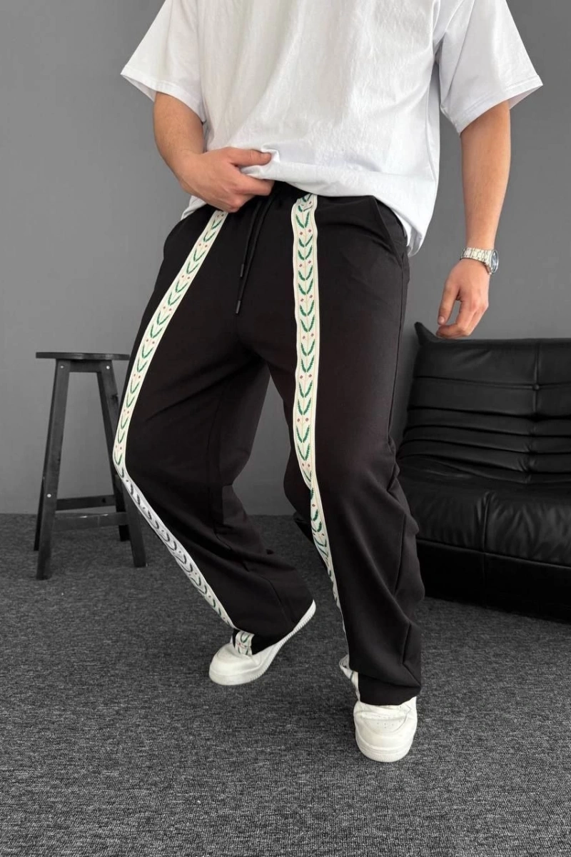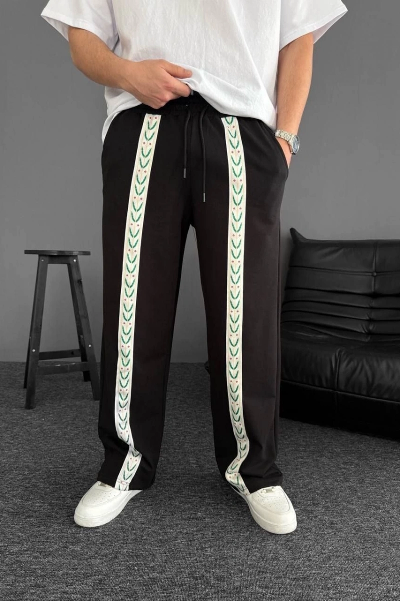 İki İplik Kumaş Şeritli Alt Esofman - Siyah