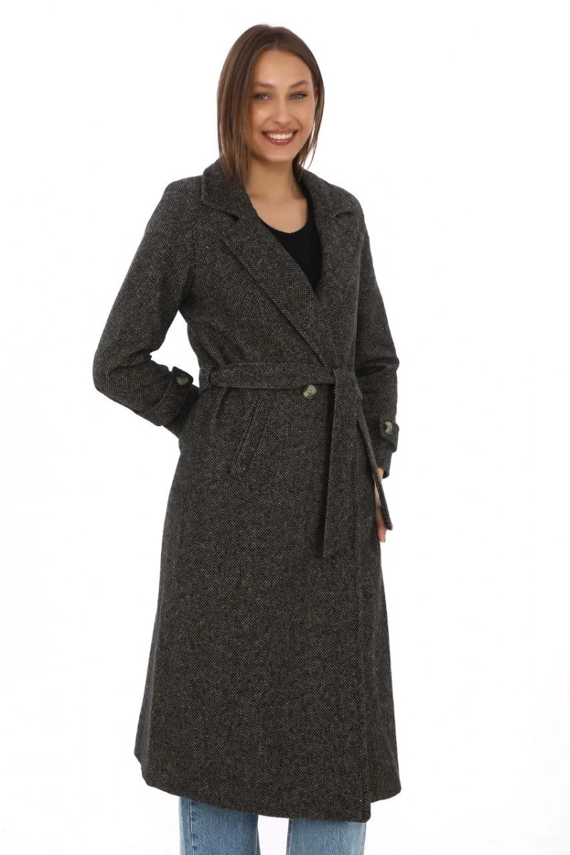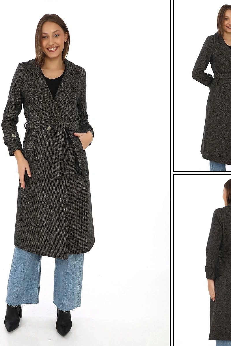 Tam12den Kadın Kol Detaylı Diegonel Kumaş Kaşmir Kaşe Kaban - Kahverengi
