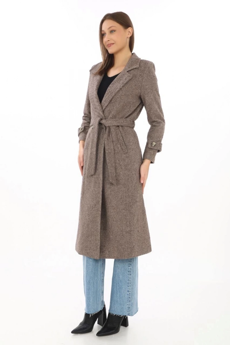 Tam12den Kadın Kol Detaylı Diegonel Kumaş Kaşmir Kaşe Kaban - Vizon