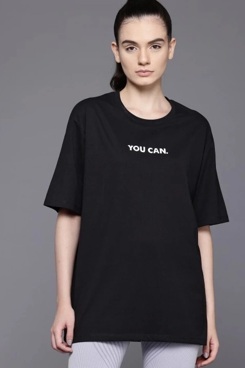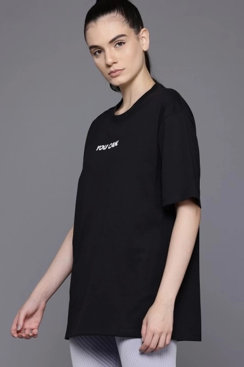 Kadın Baskılı Oversize T-shirt - Siyah