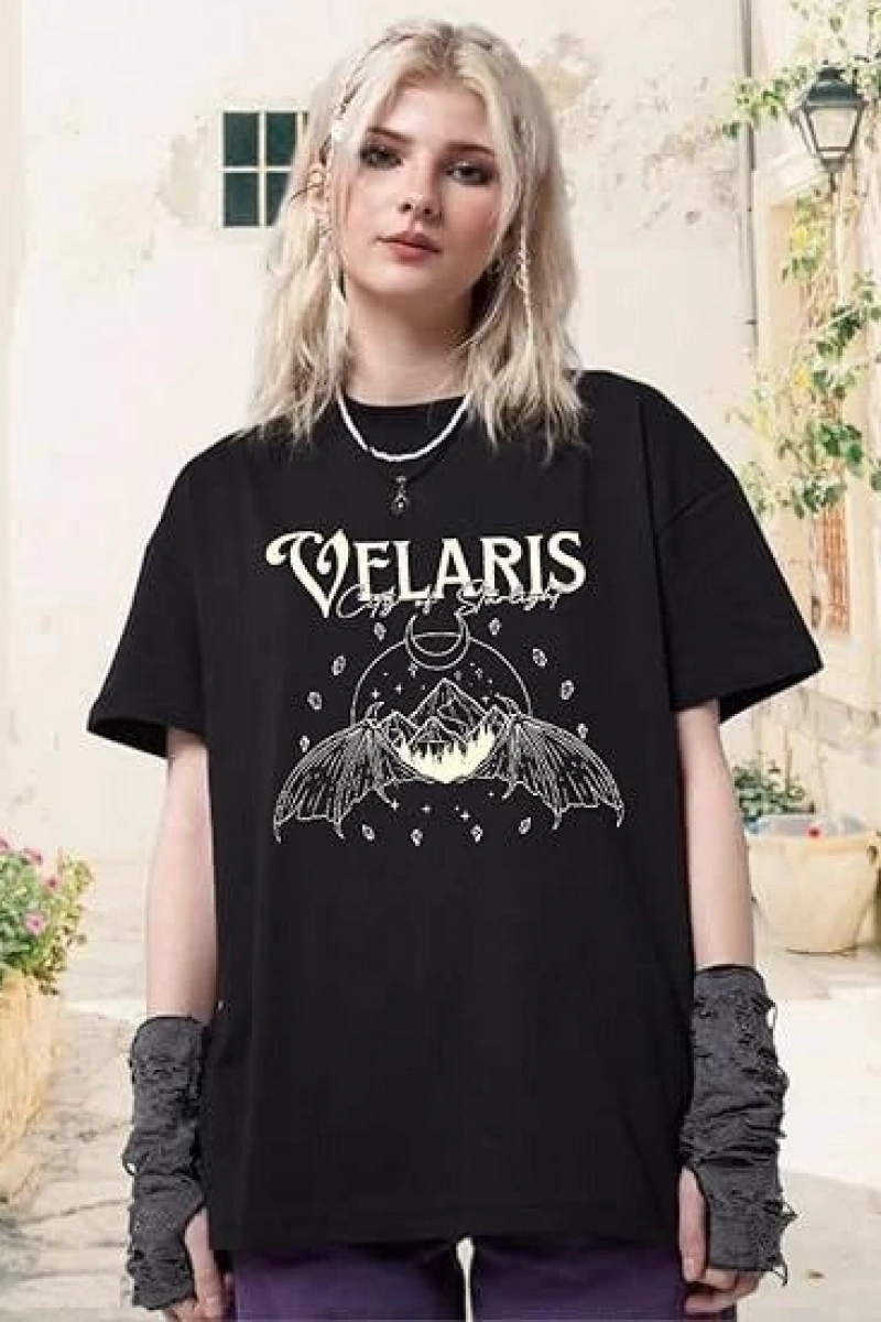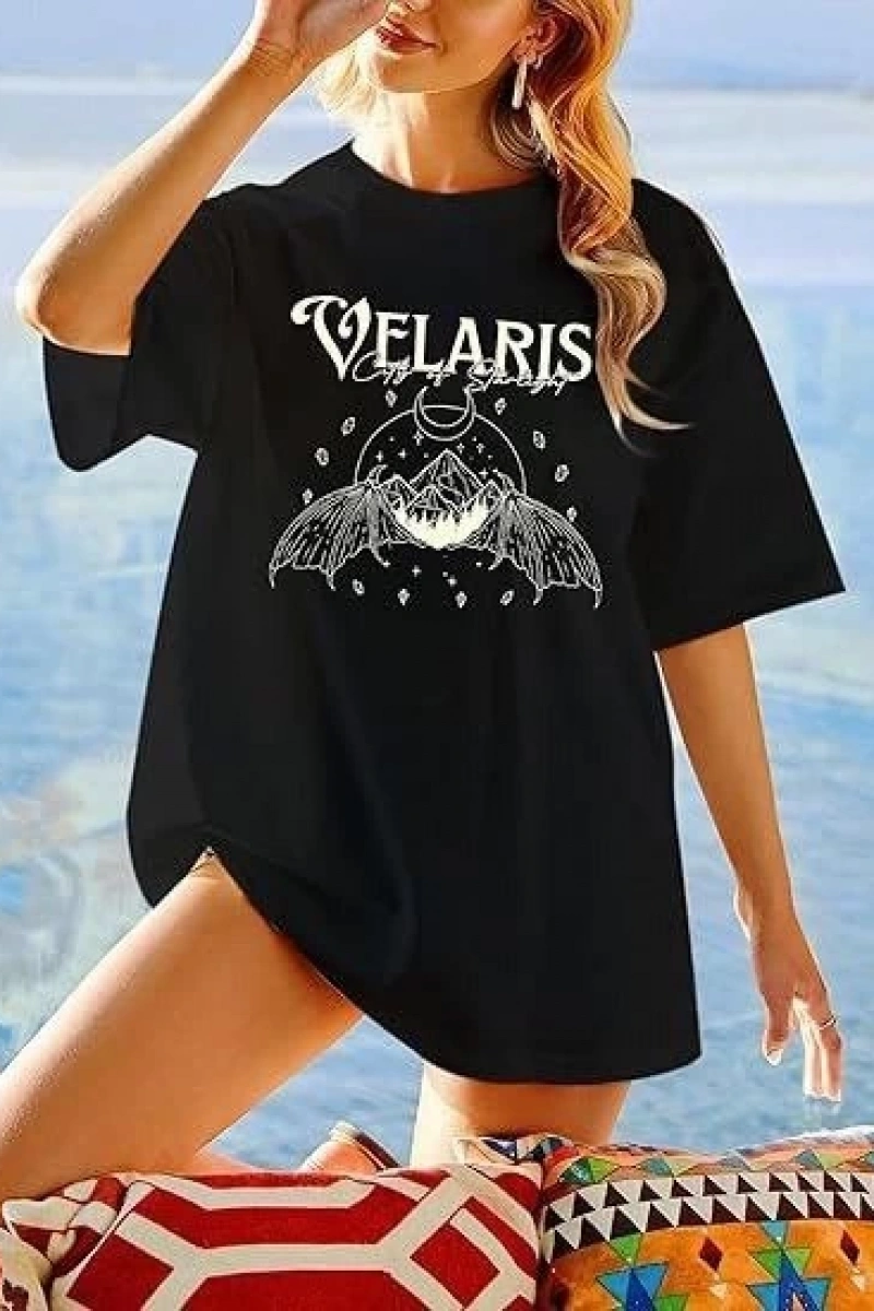 Kadın Bisiklet Yaka Baskılı T-shirt - Siyah