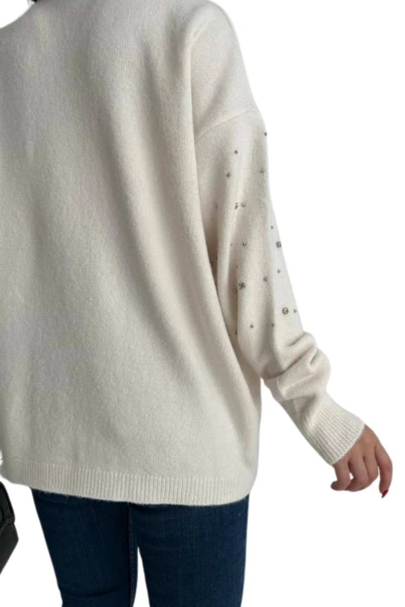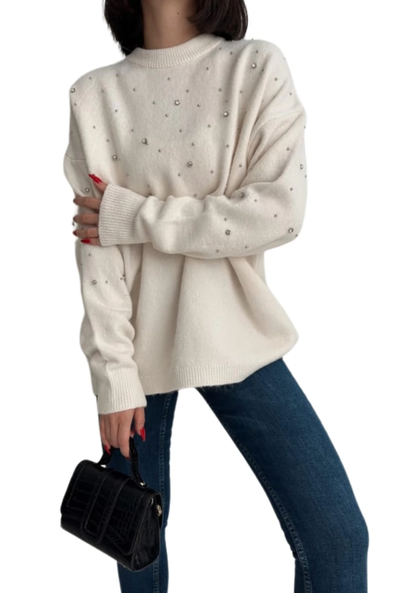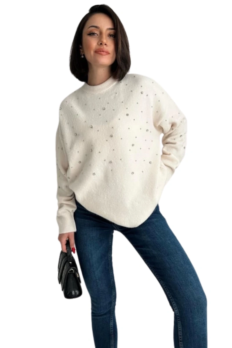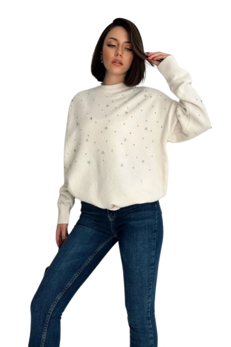 Şimdi Tam12den Home Kadın Bisiklet Yaka Dağınık Taşlı Kazak Beyaz ile tarzınızı tamamlayın!
