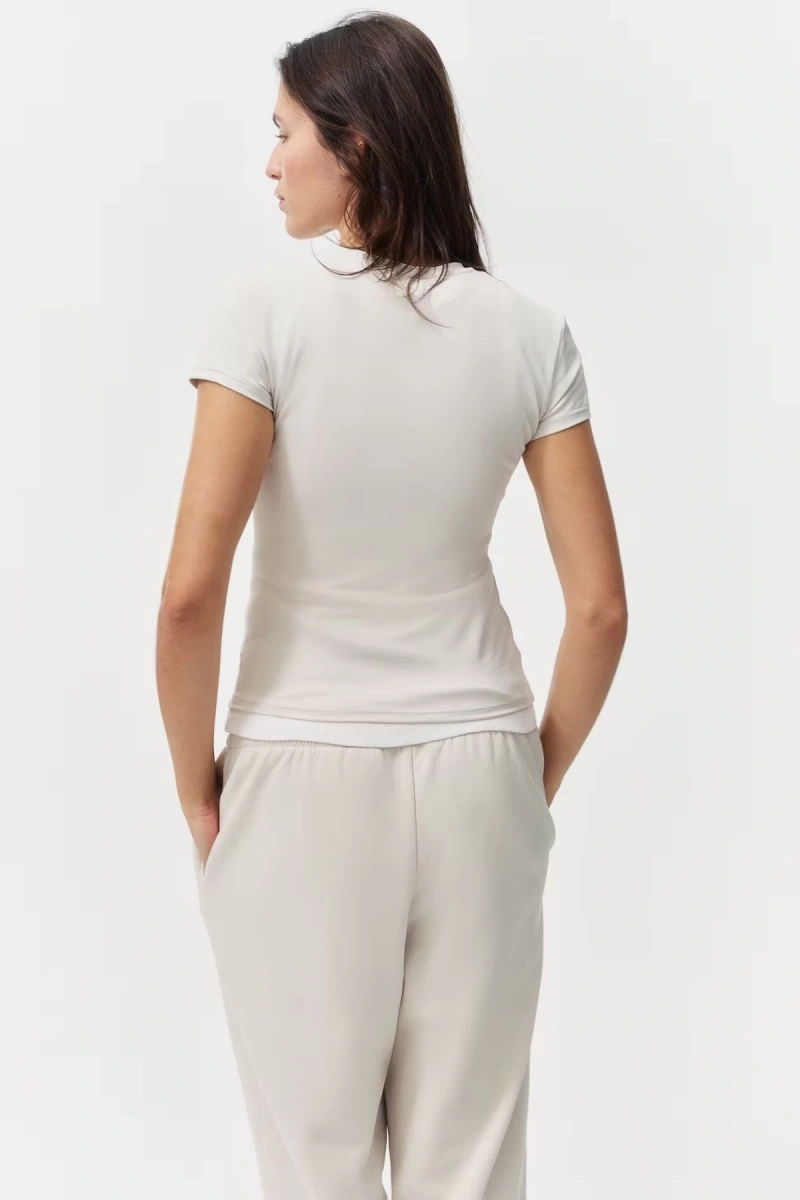 Kadın Bisiklet Yaka Regular Kalıp T-shirt Açık Gri