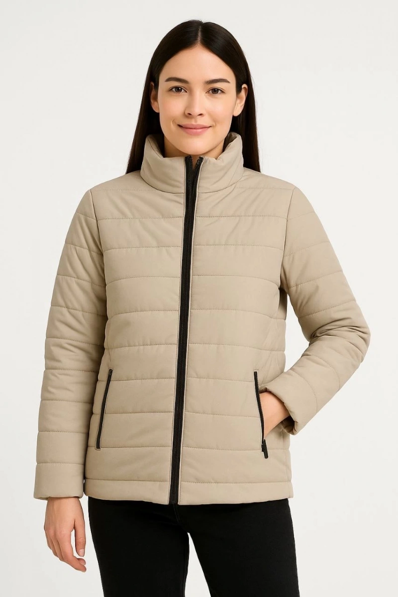 Kadın Bomber Mont Ceket – Su İtici Kumaş, Kapitone Astarlı, Fermuarlı, Kışlık - Bej