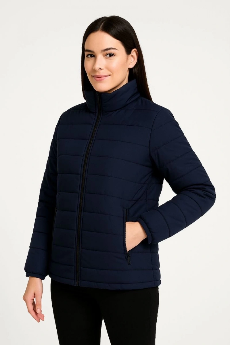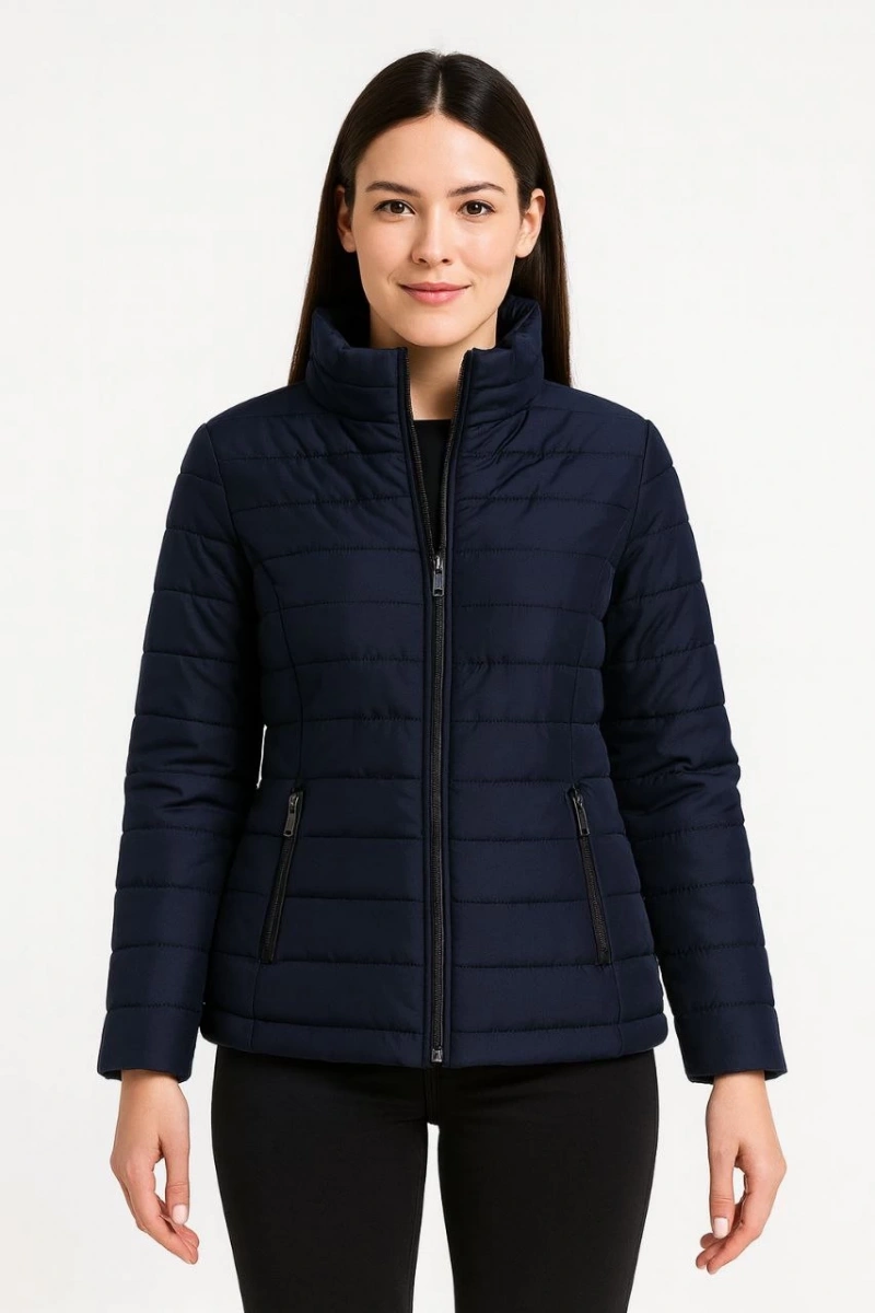 Kadın Bomber Mont Ceket – Su İtici Kumaş, Kapitone Astarlı, Fermuarlı, Kışlık - Lacivert