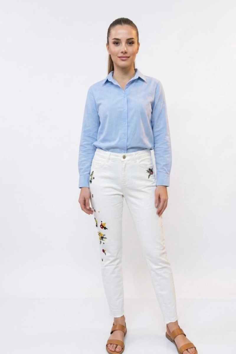 Kadın Desenli Dar Kesim Kot Pantolon - Beyaz