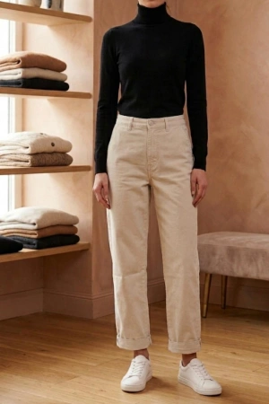 Kadın Düz Kalıp Geniş Paça - Krem