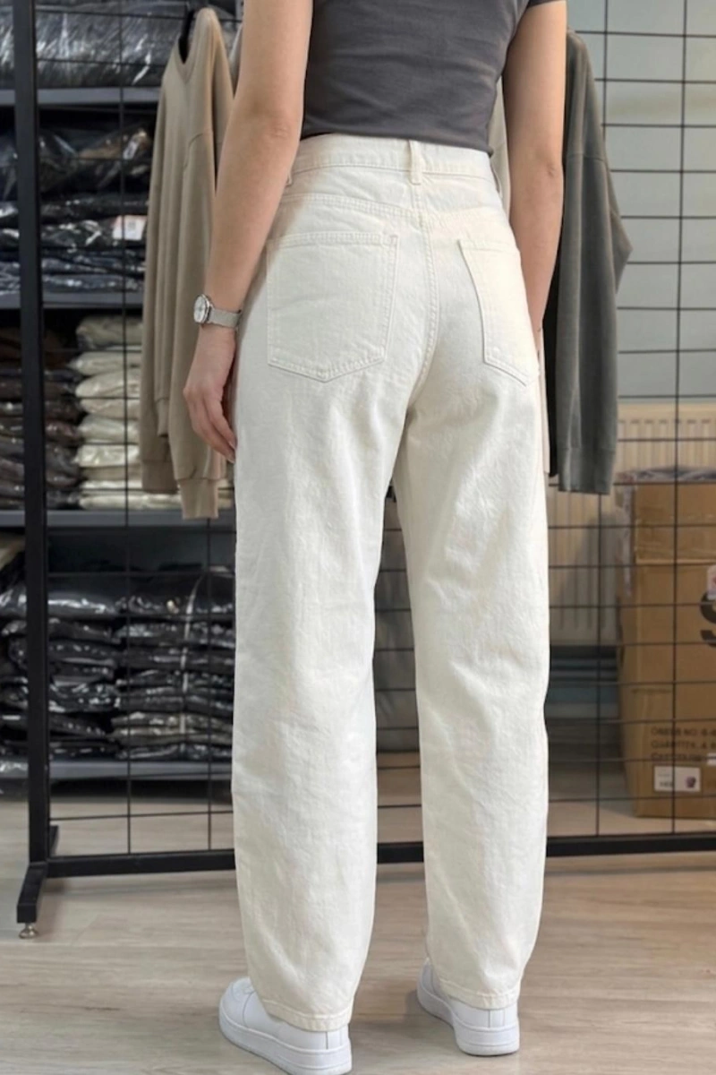 Kadın Düz Kesim Kot Pantolon - Beyaz