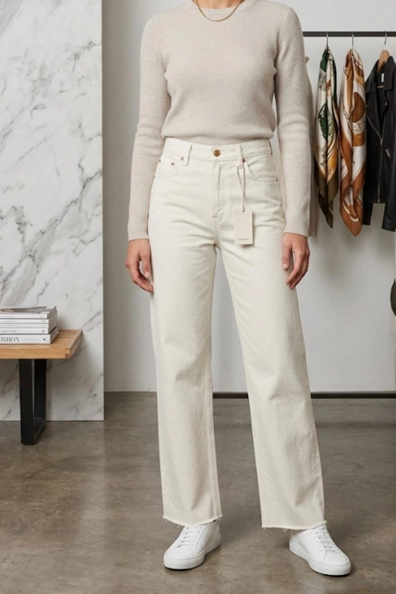 Kadın Yüksek Bel Bol Paça Kot Pantolon - Beyaz