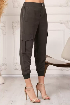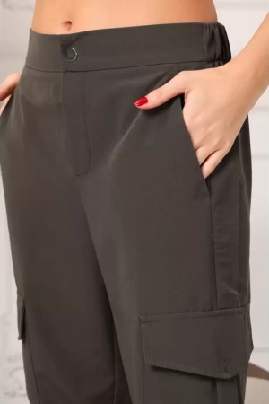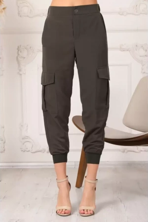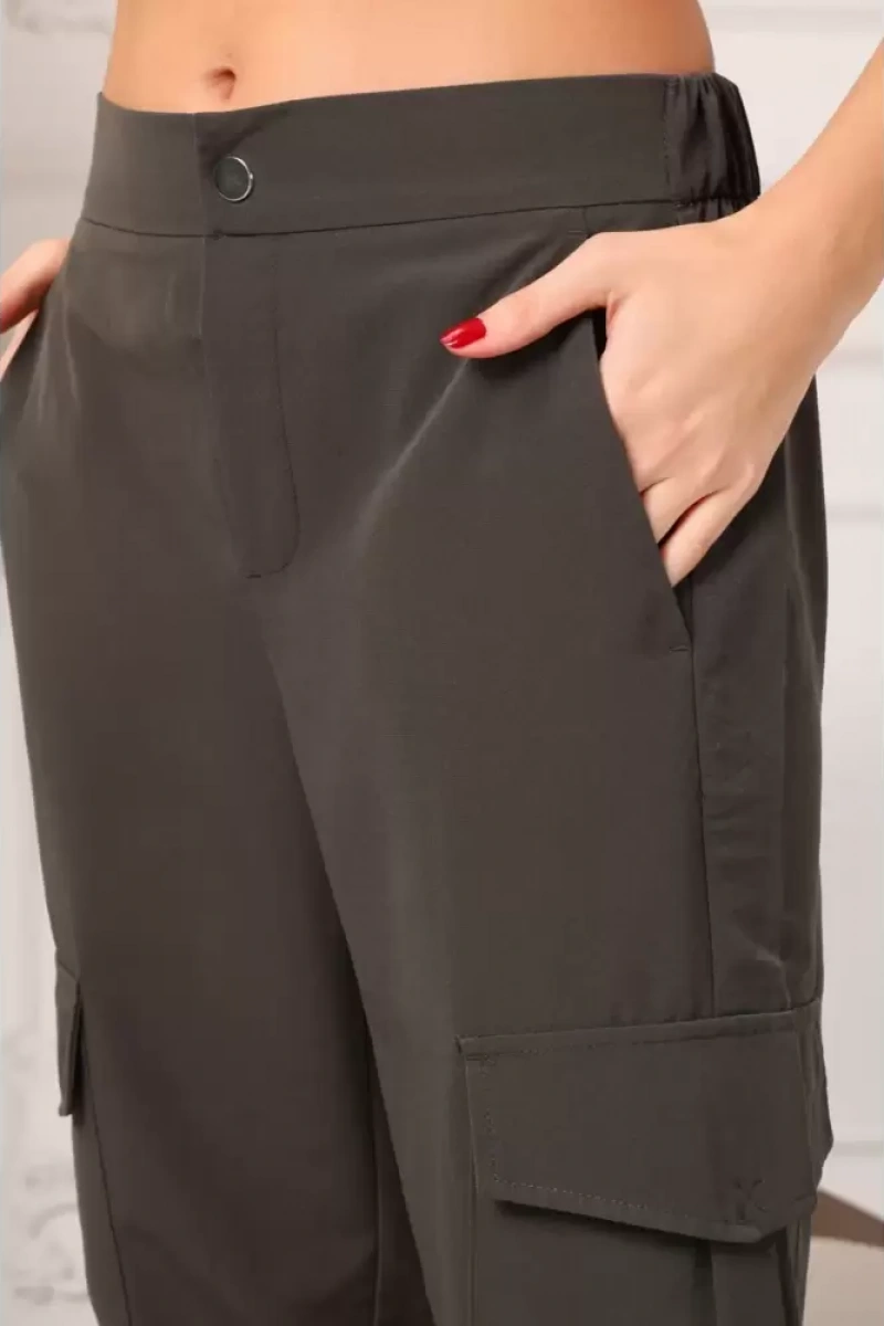 Yeni sezonun vazgeçilmezi Kadın Haki Beli Ve Paçası Lastikli Rahat Kesim Jogger Kargo Cep Pantolon ile şıklığı ve rahatlığı bir arada yaşayın.