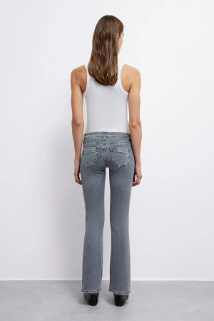 Kadın Mavi Jeans Mid-Rise Slim Bootcut - Gri - Bella