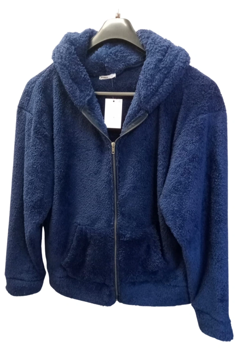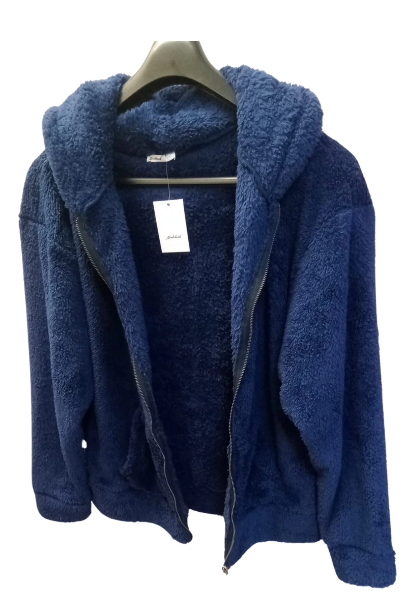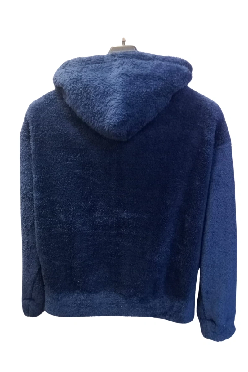 Kadın Kapüşonlu Peluş Polar Mavi;