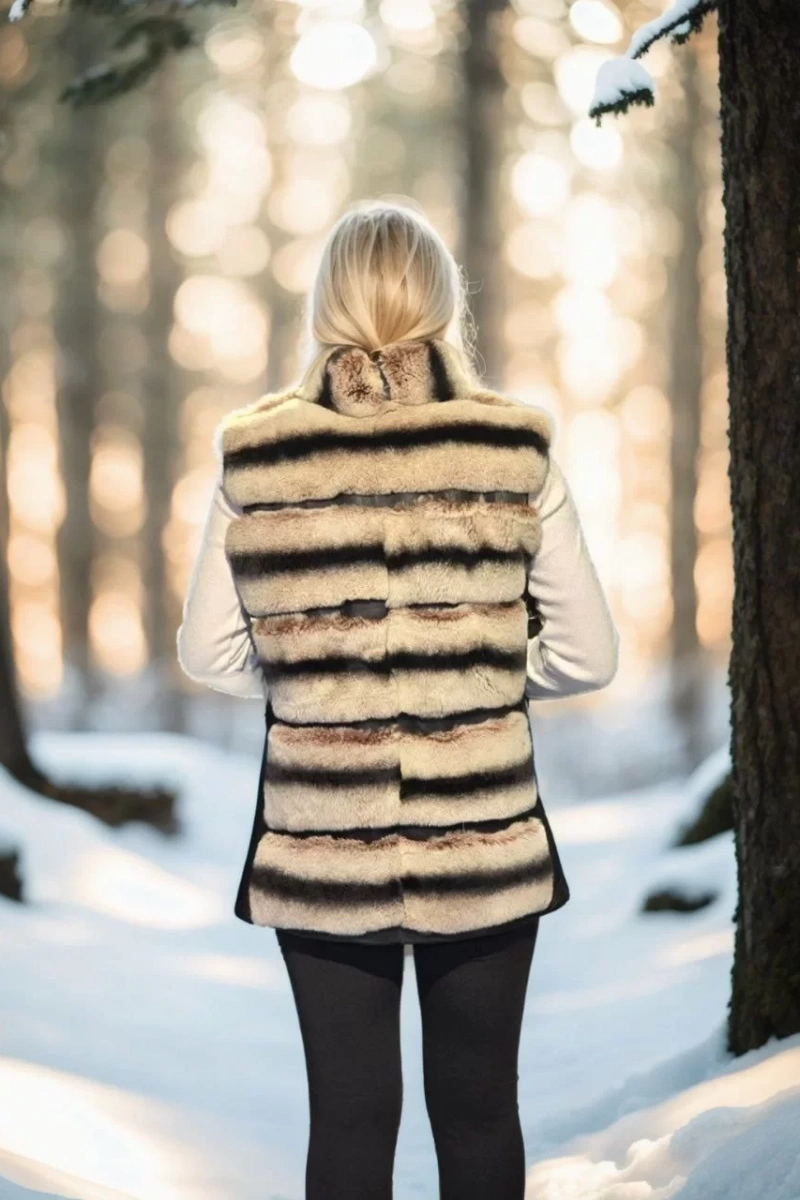 Kadın Kolsuz Hakiki Deri Kürk - Siyah
