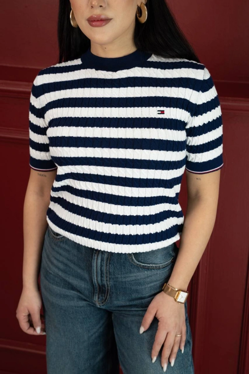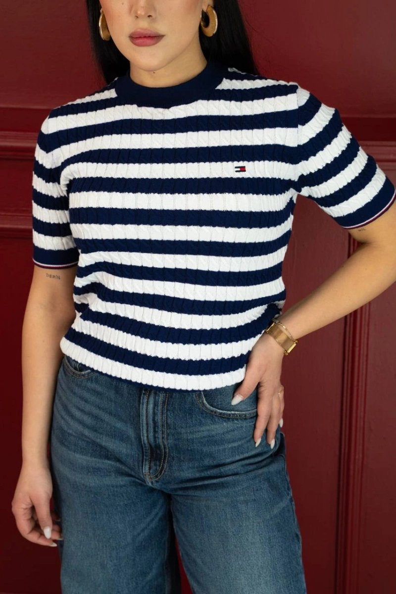 Ralph Lauren’in ikonik Amerikan stilini, modern kadının gardırobuna taşıyan en özel parça: Exclusive Saç Örgü Triko Tişört. Geleneksel saç örgü (cable-knit) ustalığını, tişört rahatlığı ve triko şıklığıyla birleştiren bu tasarım; 3 farklı renk seçeneği ile sizi bekliyor.