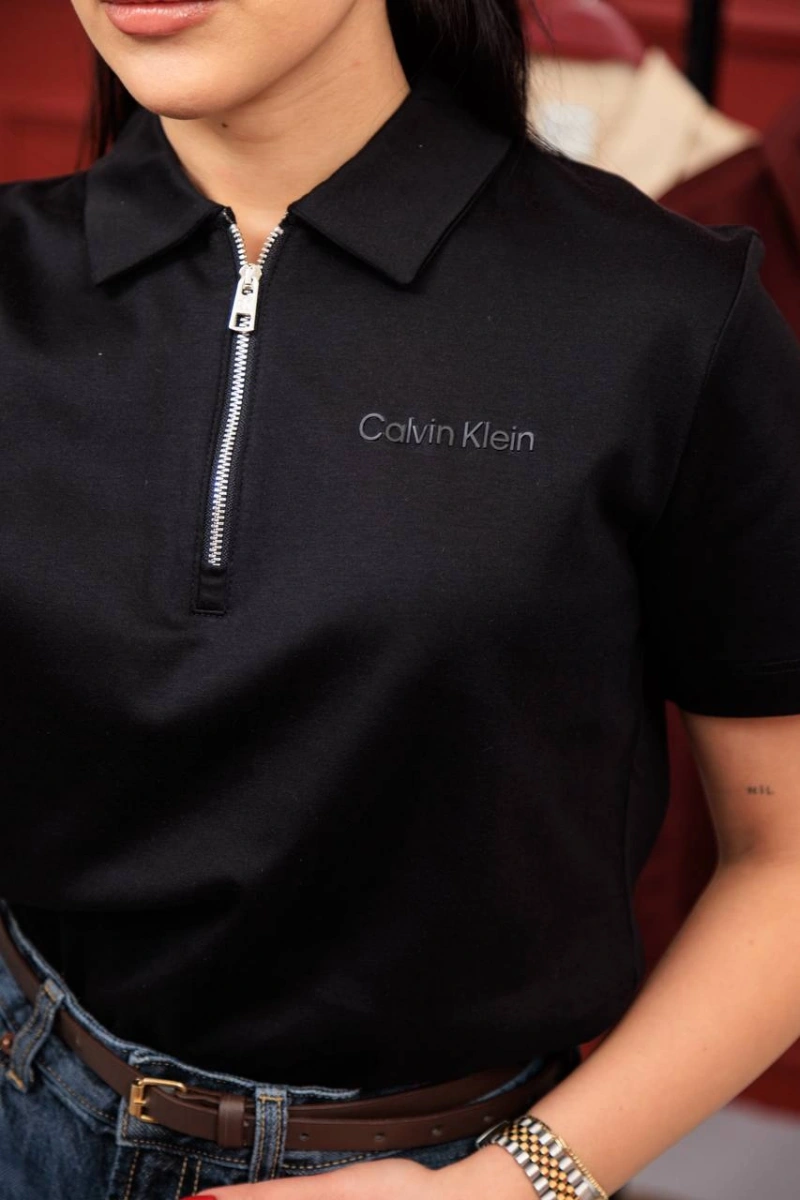 Logo: Göğüs kısmında tonal (siyah üzerine siyah) nakışlı, prestijli "Calvin Klein" yazısı.