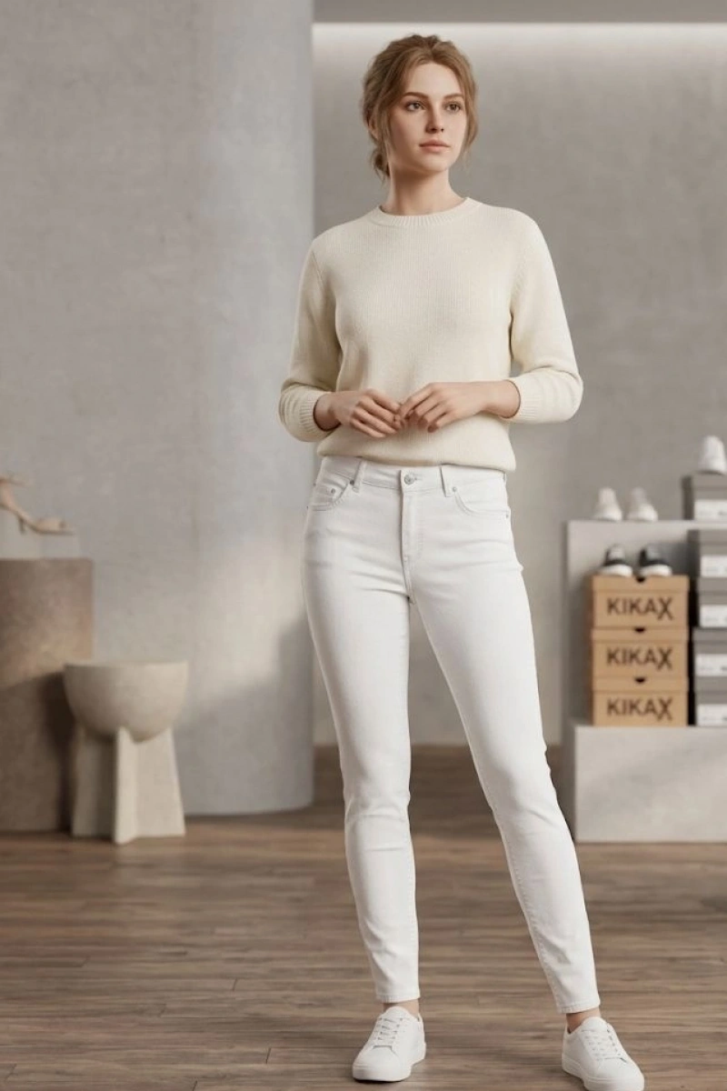 Kadın Dar Paça Kot Pantolon - Beyaz