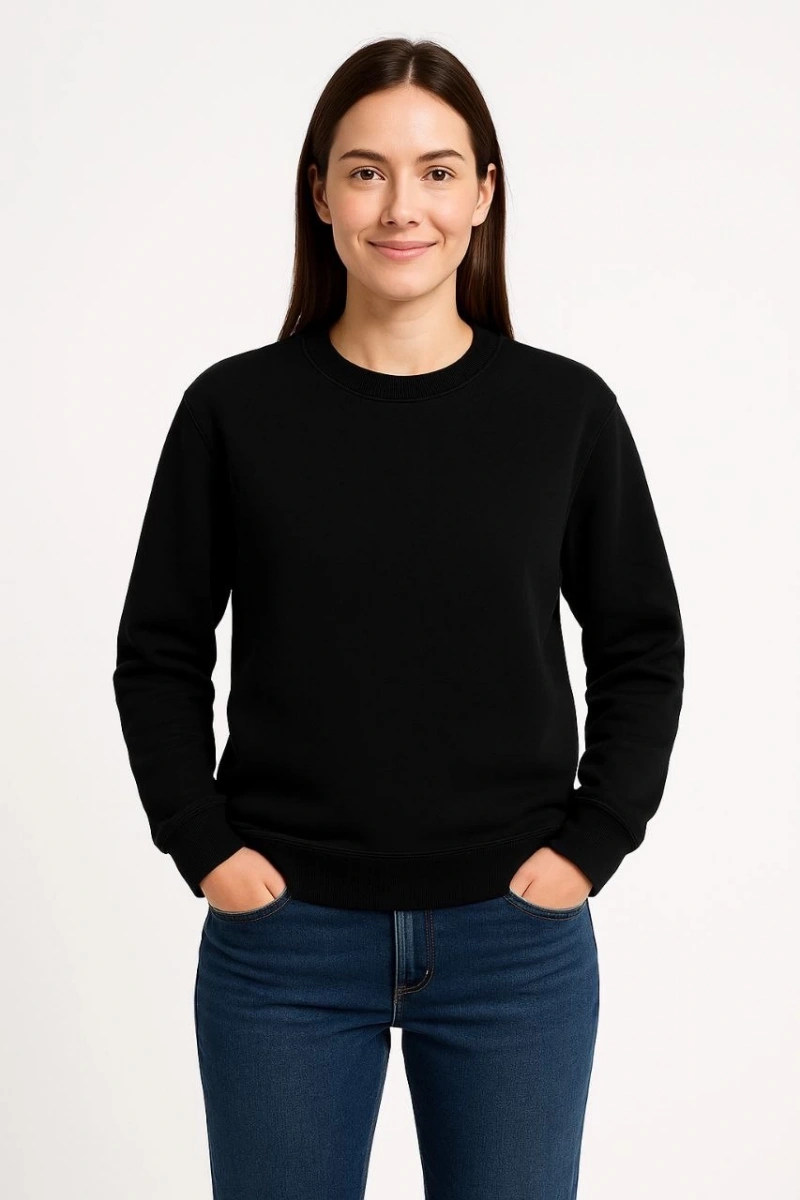 Kadın Üç İplik Düz Bisiklet Yaka SweatShirt - Siyah