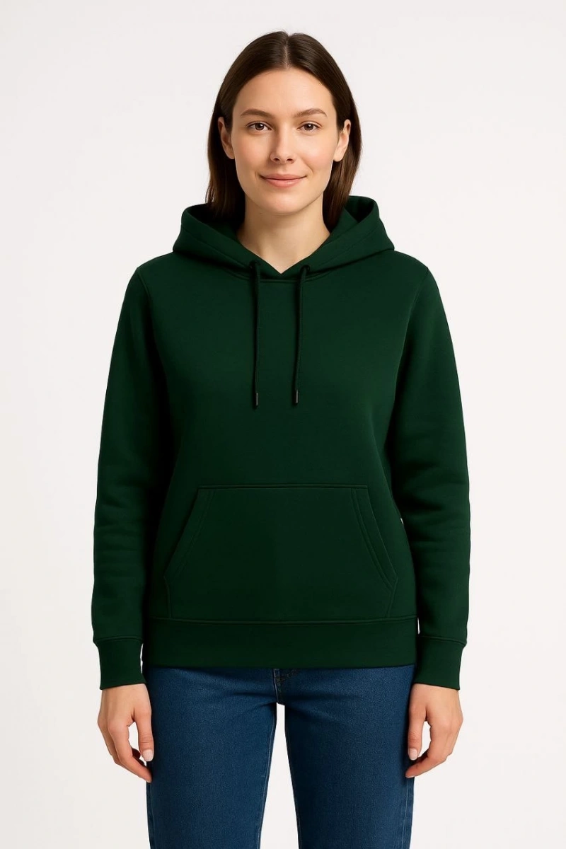 Kadın Üç İplik Kapüşonlu Kanguru Cepli Sweatshirt hoodie - Haki
