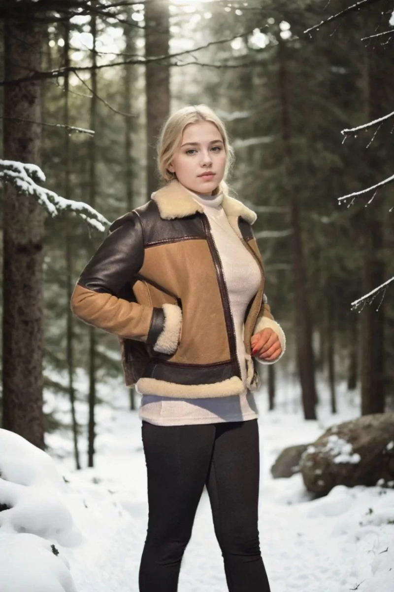 Kadın Uzun Kollu Yakalı Hakiki Kürk - Kahve