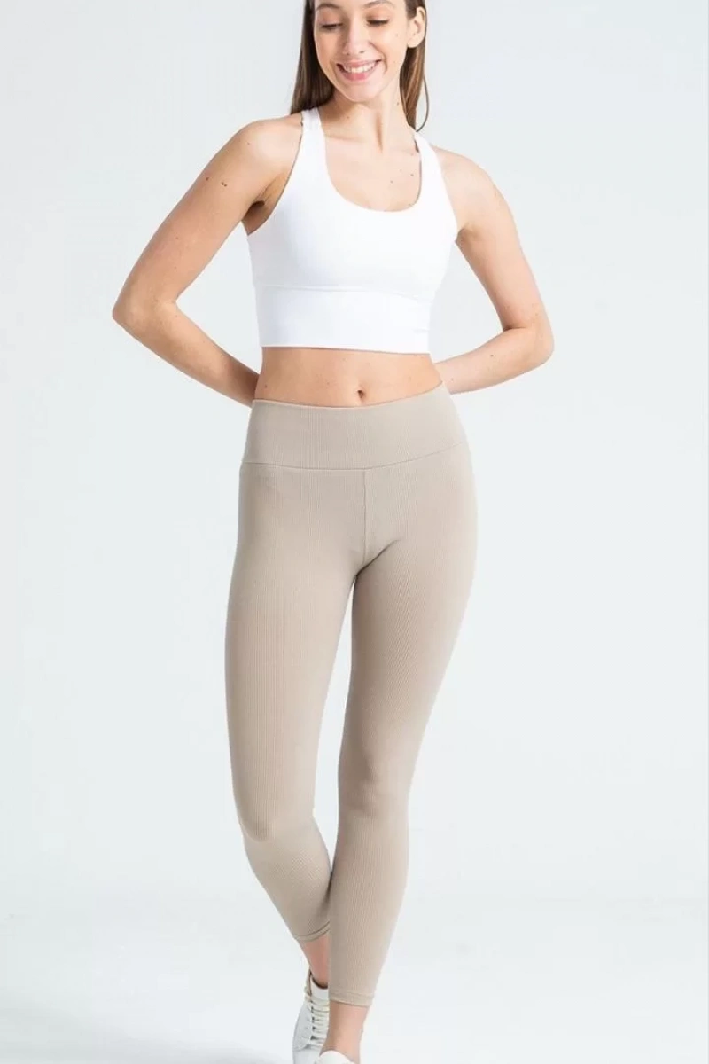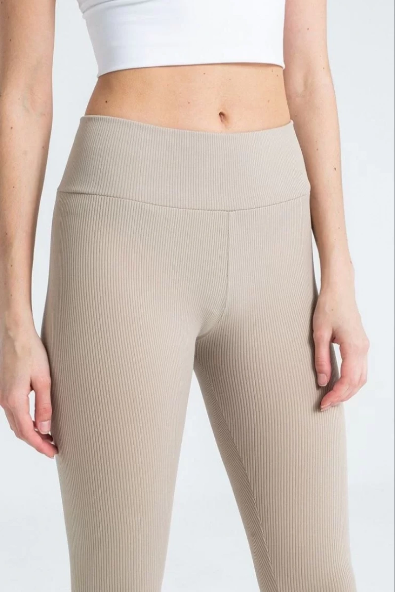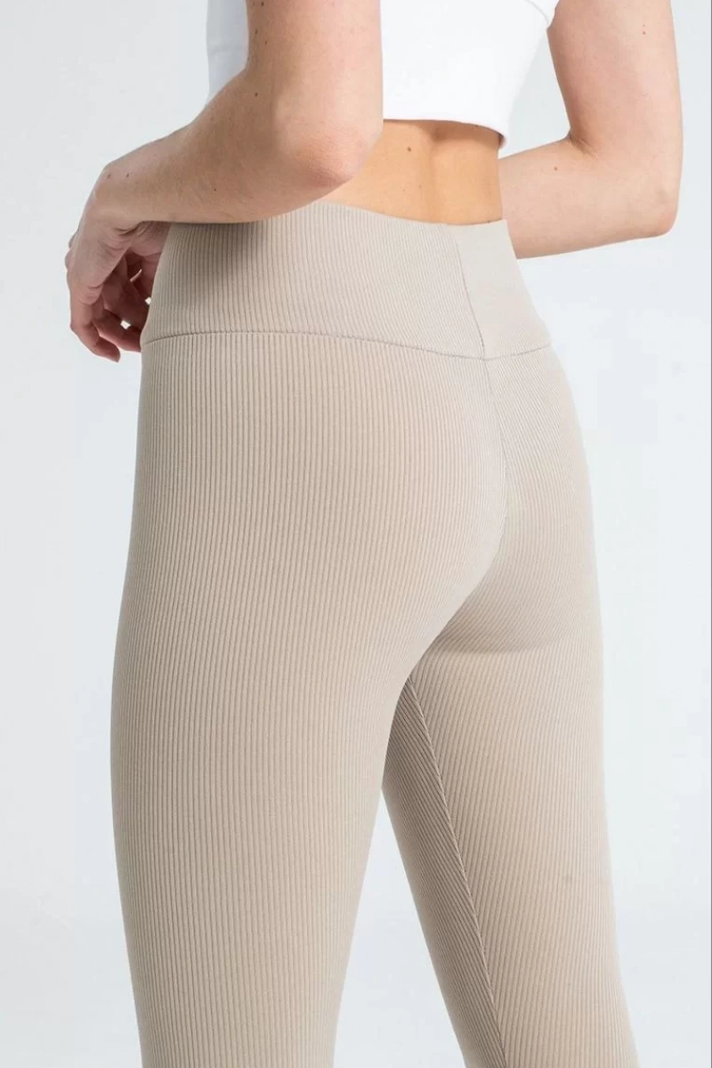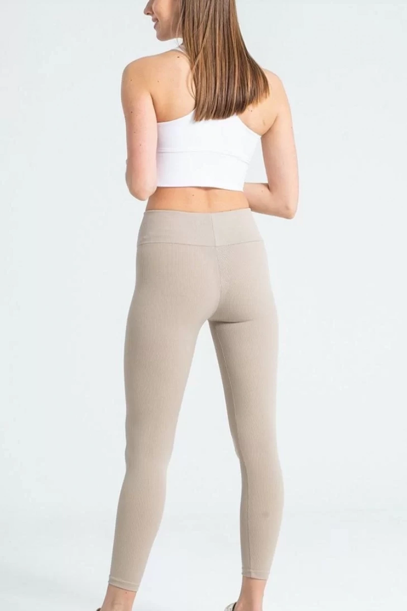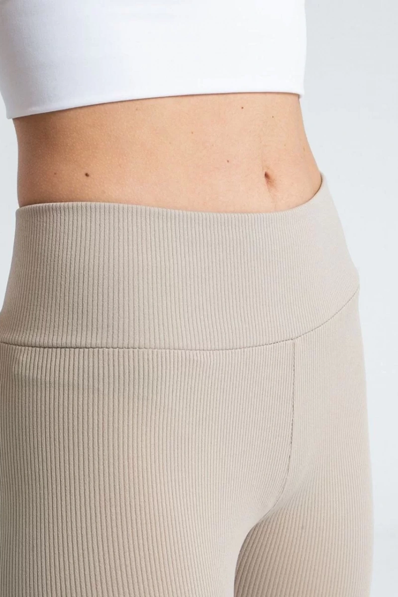 Kadın Yüksek Bel Fitilli Tayt - Bej
