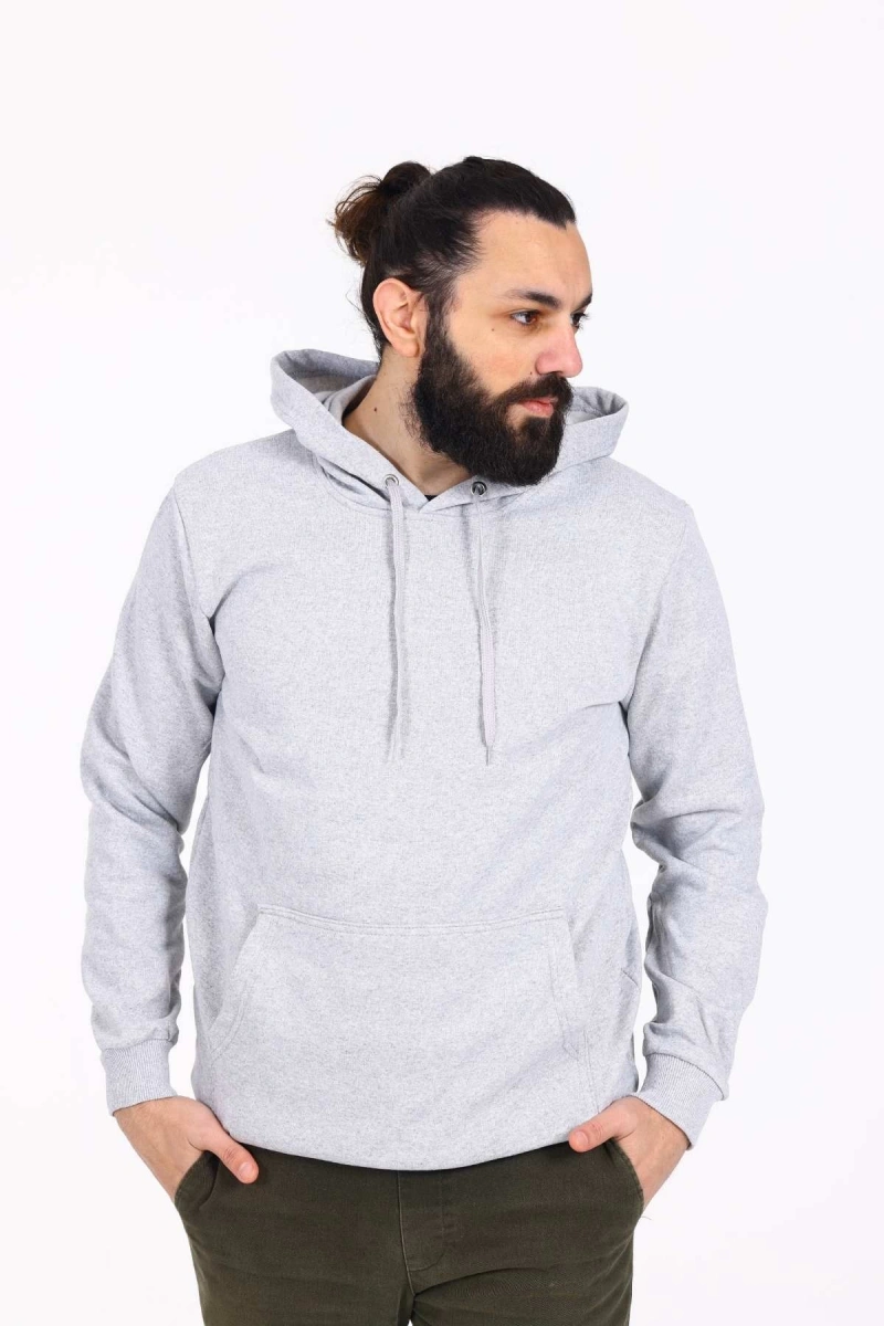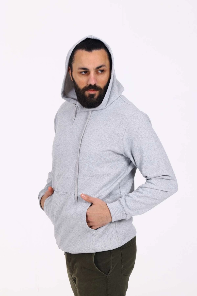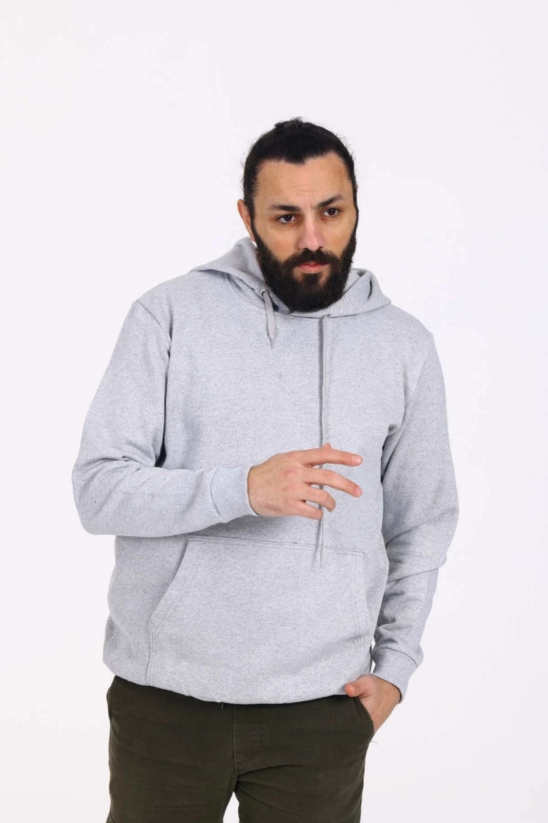Kapüşonlu İçi Polarlı Regular Kalıp Erkek Sweatshirt Gri