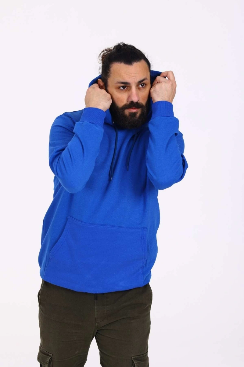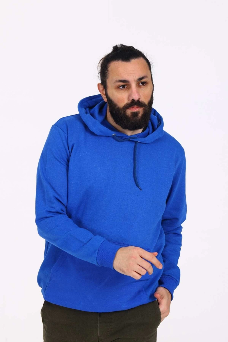 Kapüşonlu İçi Polarlı Regular Kalıp Erkek Sweatshirt Mavi