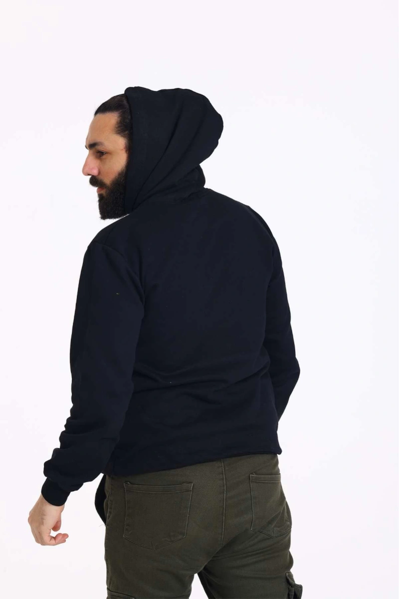 Kapüşonlu İçi Polarlı Regular Kalıp Erkek Sweatshirt Siyah