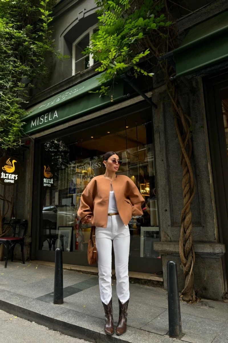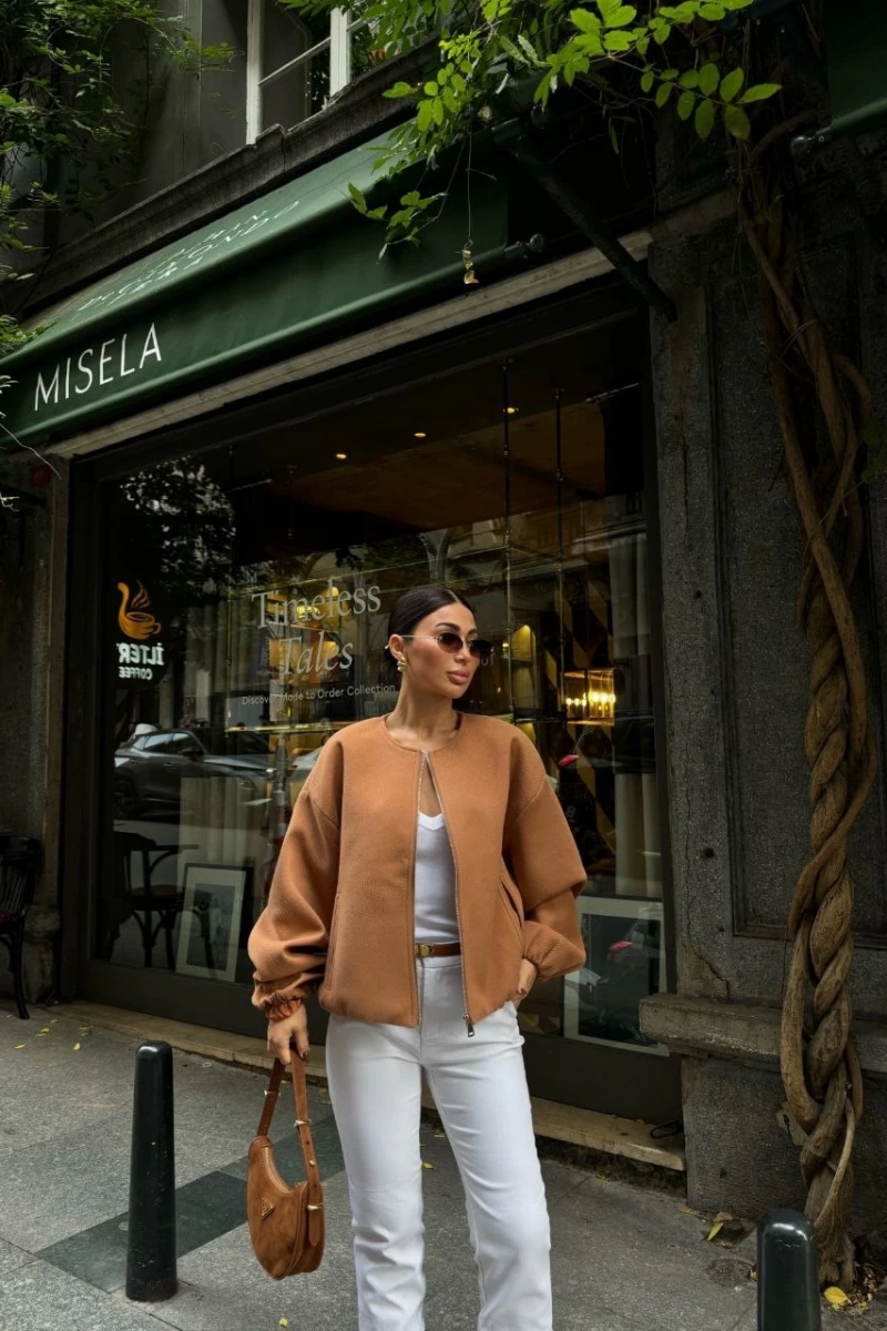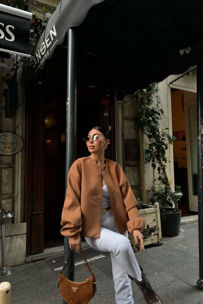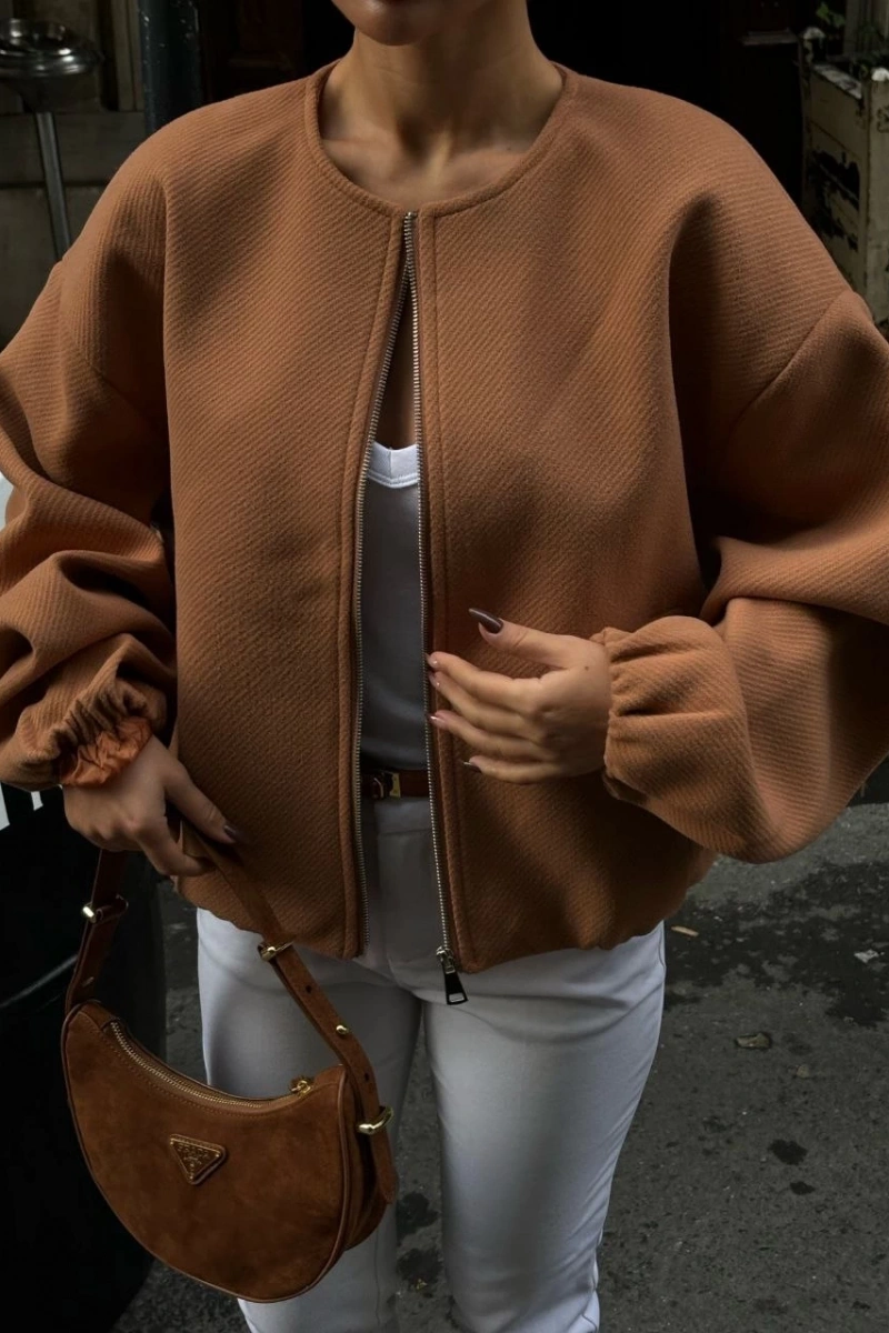 Kaşe Kaşmir Fermuarlı CEKET - Kahve