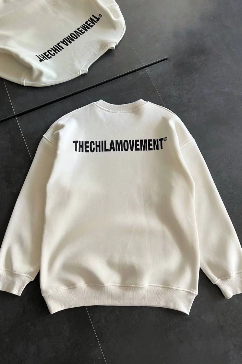 Kışlık Bisiklet Yaka Oversize Baskılı SweatShirt - Beyaz