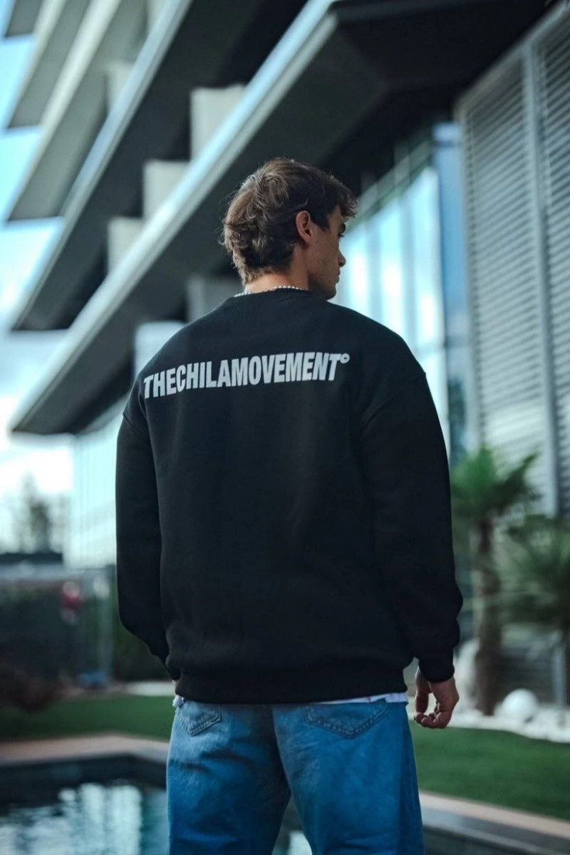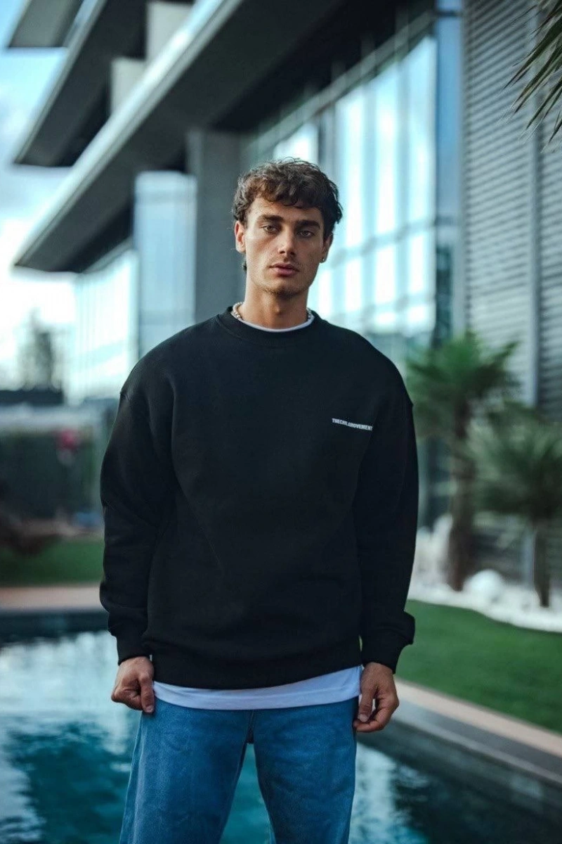 Kışlık Bisiklet Yaka Oversize Baskılı SweatShirt - Siyah