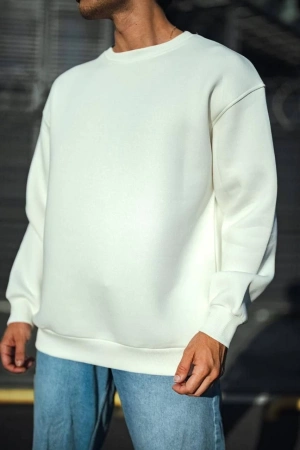 Kışlık Bisiklet Yaka Üç İplik Basic SweatShirt - Beyaz