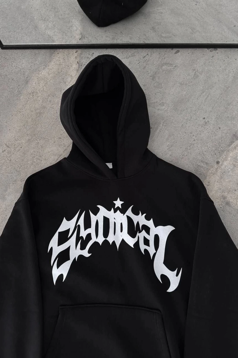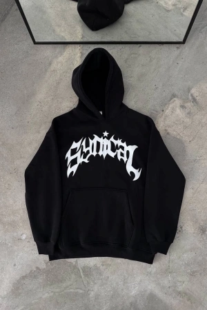 Kışlık Kapüşonlu Baskılı Oversize SweatShirt- Siyah