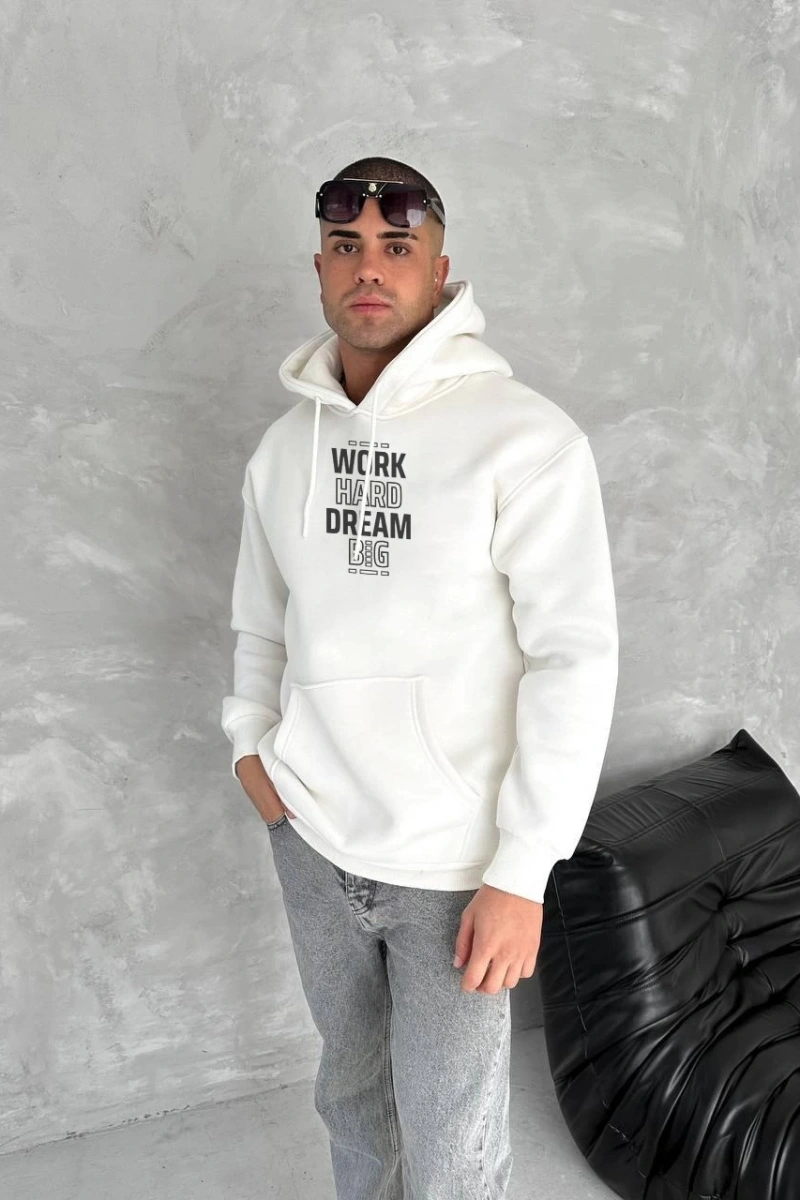Kışlık Üç İplik Kapüşonlu SweatShirt - Beyaz