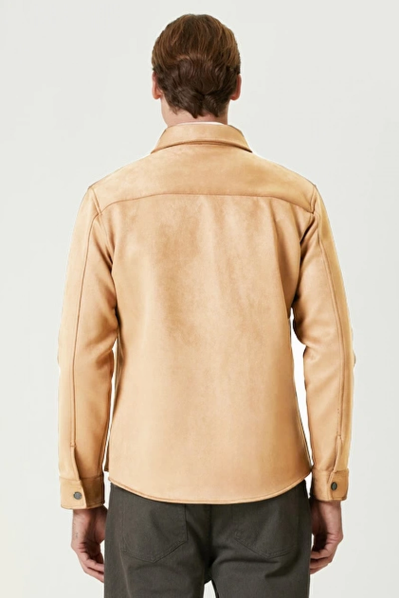 Klasik Yaka Göğüs Cepli Önü Düğmeli Bej Renkli Erkek Dış Gömlek