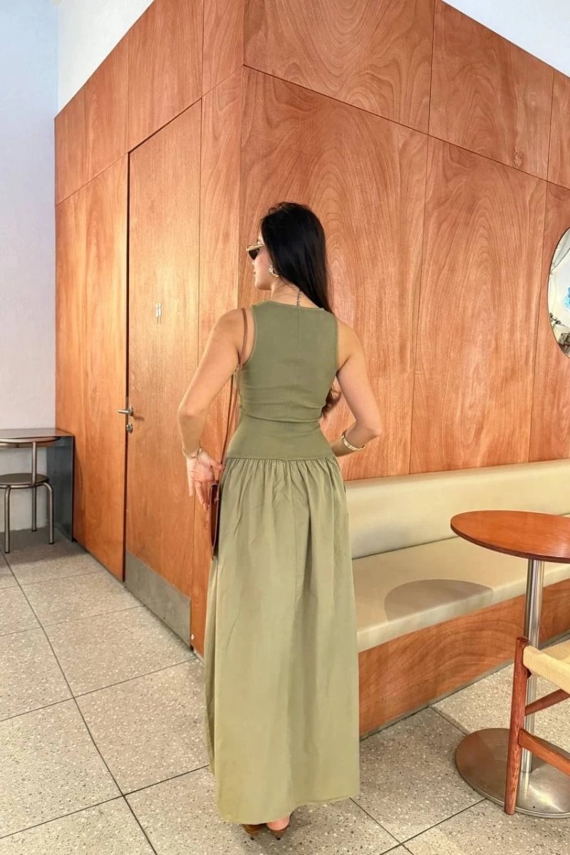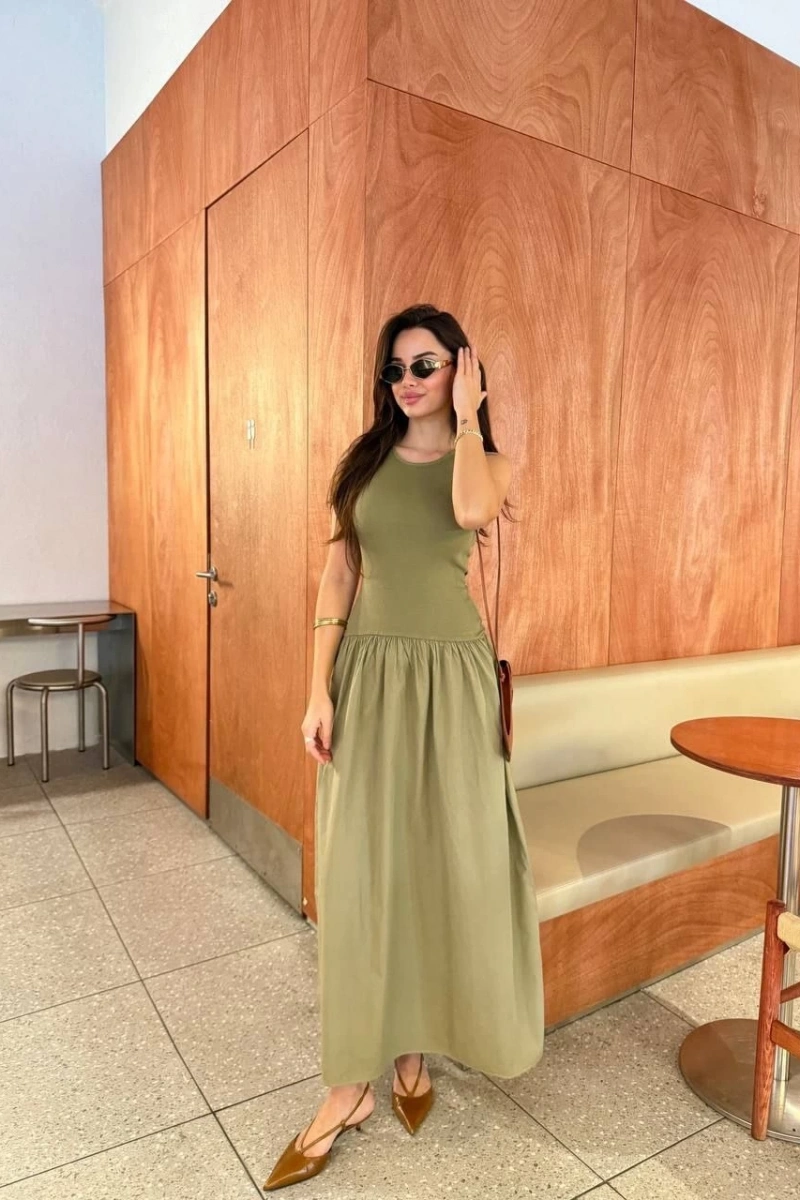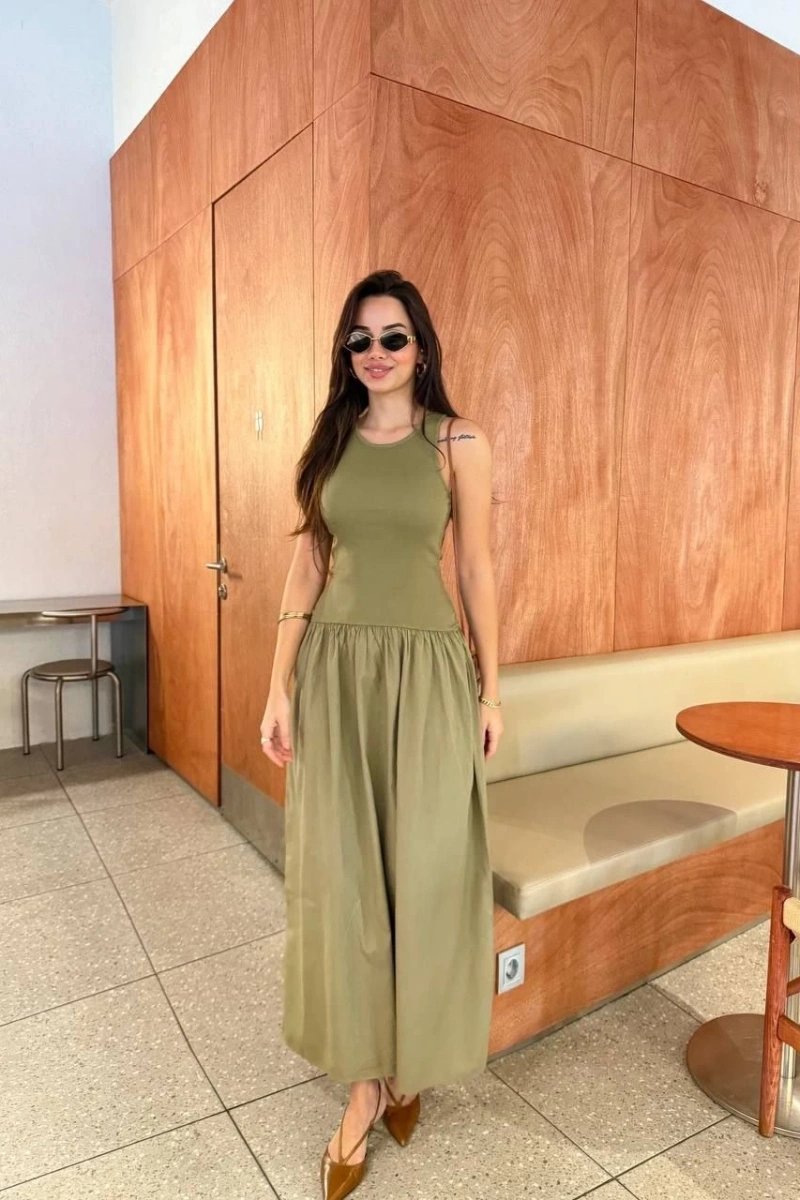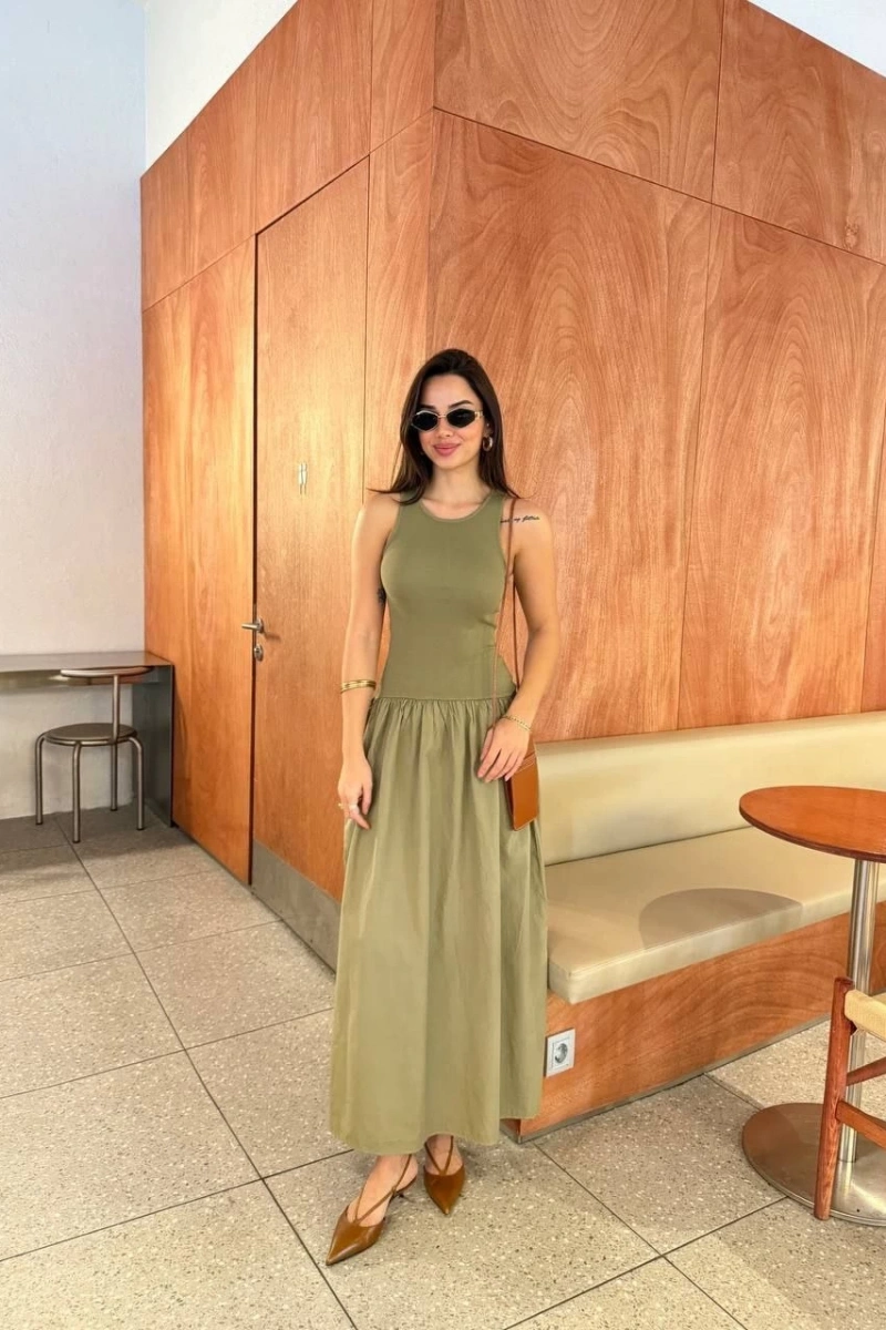 Düz Kesim : Sade ve zamansız tarzıyla her türlü kombinle uyum sağlar. Kolsuz yapısı, elbiseye hacim ve hareket kazandırarak feminen bir siluet yaratır.
