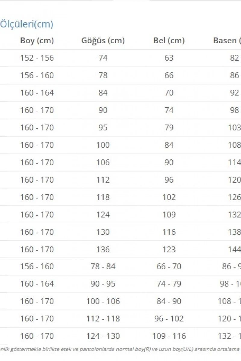 Göğüs: 84 cm Bel: 59 cm Basen: 90 cm Boy: 178 cm