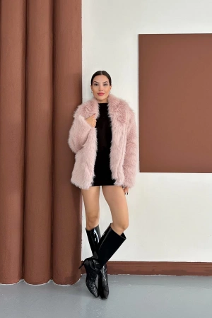 Kış gardırobunuza anında lüks ve zarafet katacak bu pembe suni kürk ceket ile tanışın. Yüksek kaliteli, yumuşacık peluş dokusu sayesinde hem sıcacık kalacak hem de iddialı bir stil yaratacaksınız.