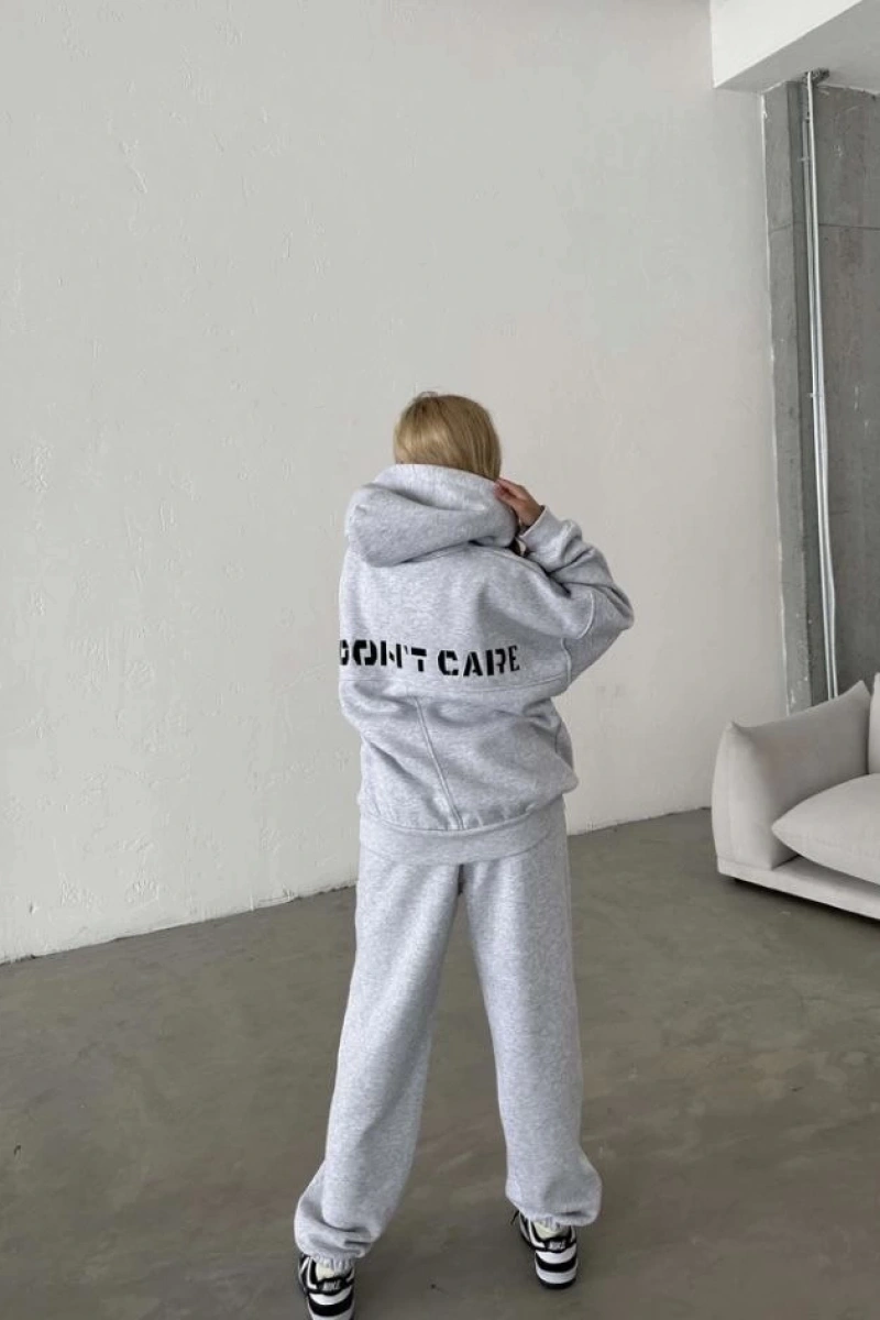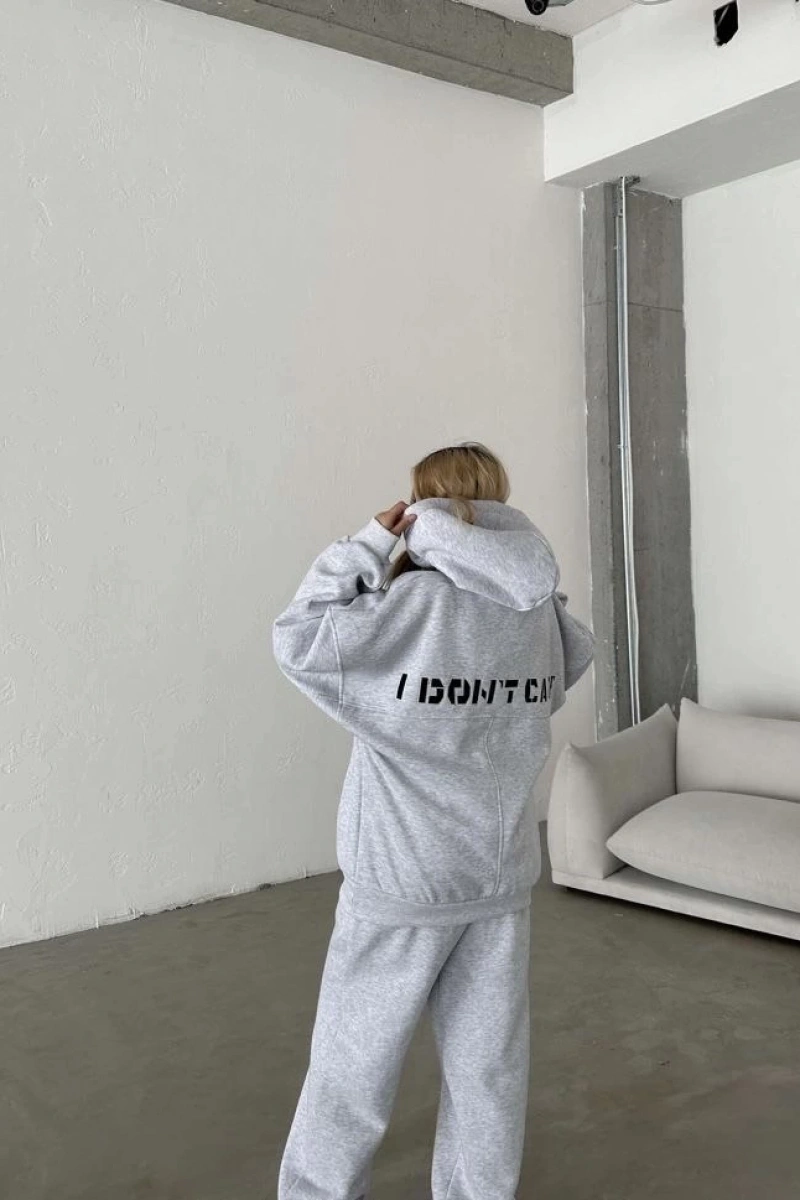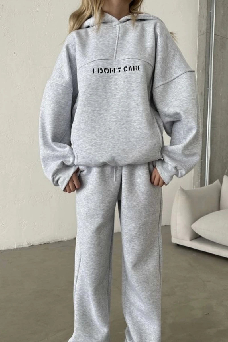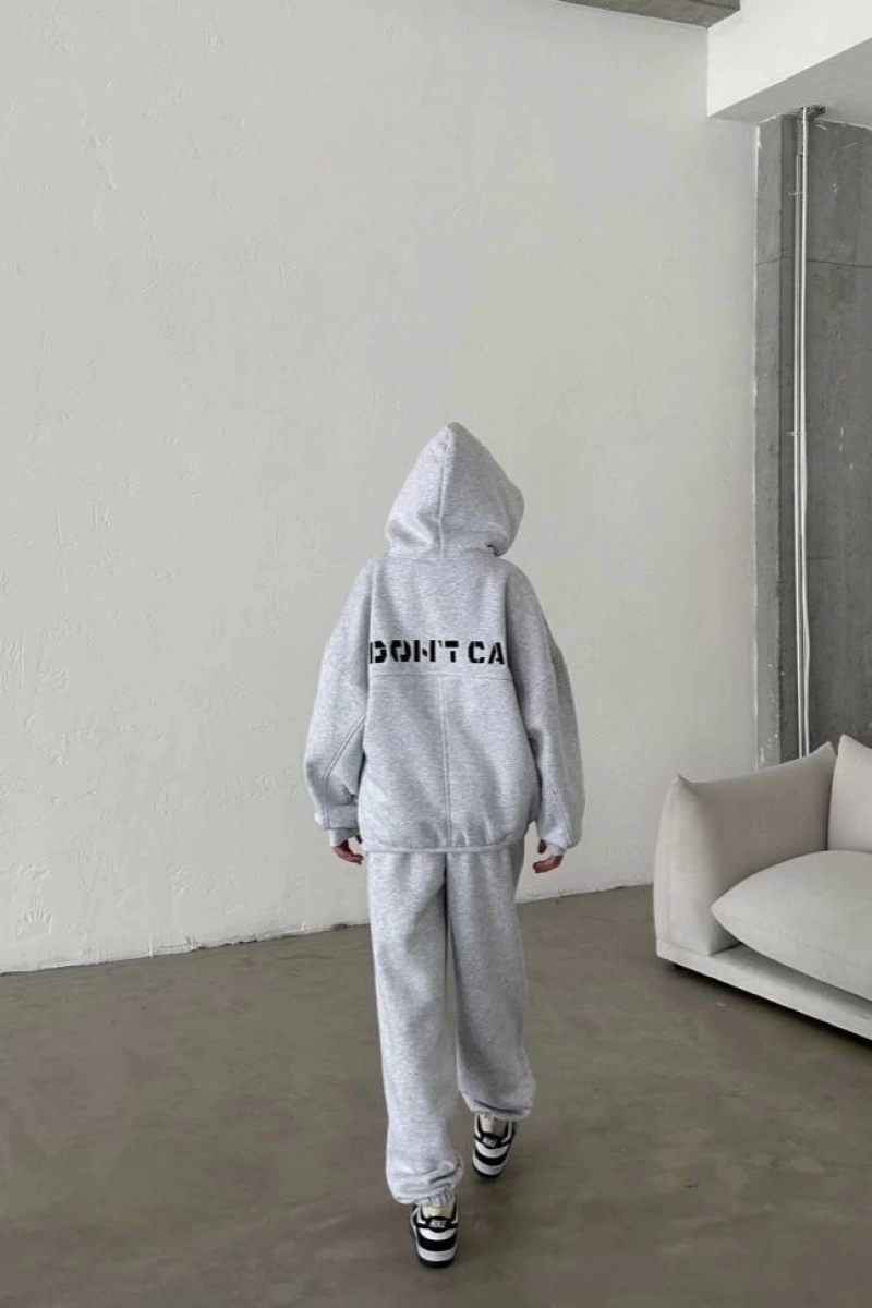 Nakış İşlemeli Üç İplik Sweat Takım- Gri