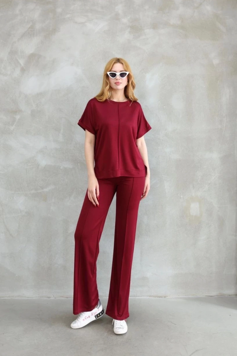 Osy Modal Yumuşak dokulu Kumaş Bisiklet Yaka Kısa Kollu Takım - Bordo