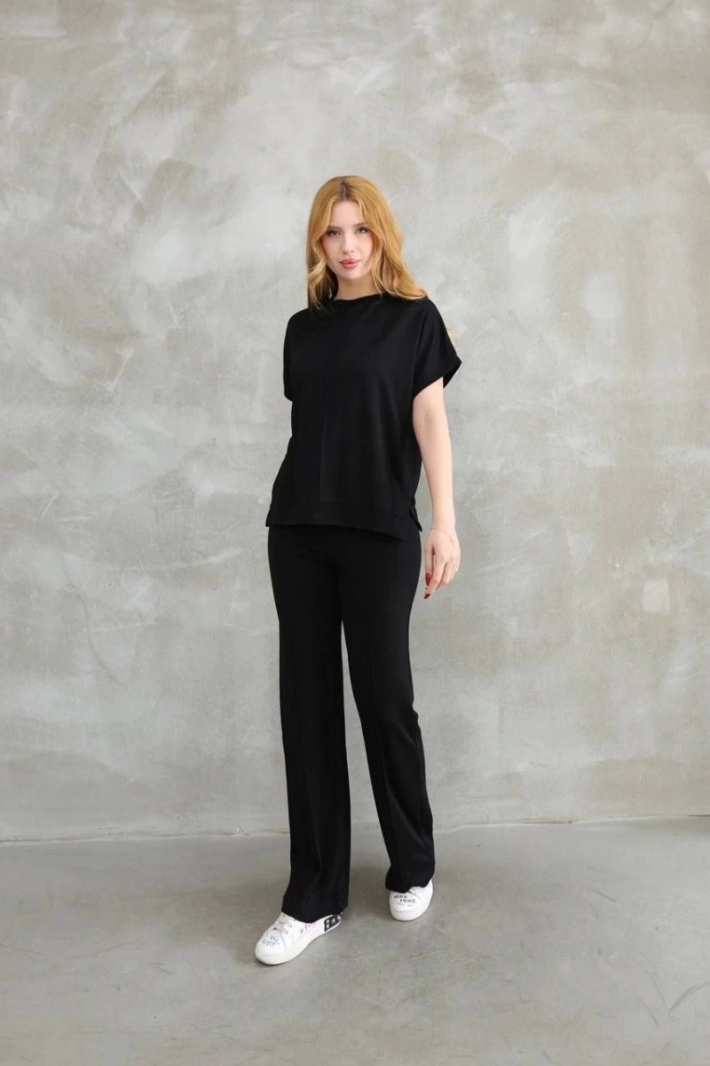 Osy Modal Yumuşak dokulu Kumaş Bisiklet Yaka Kısa Kollu Takım - Siyah
