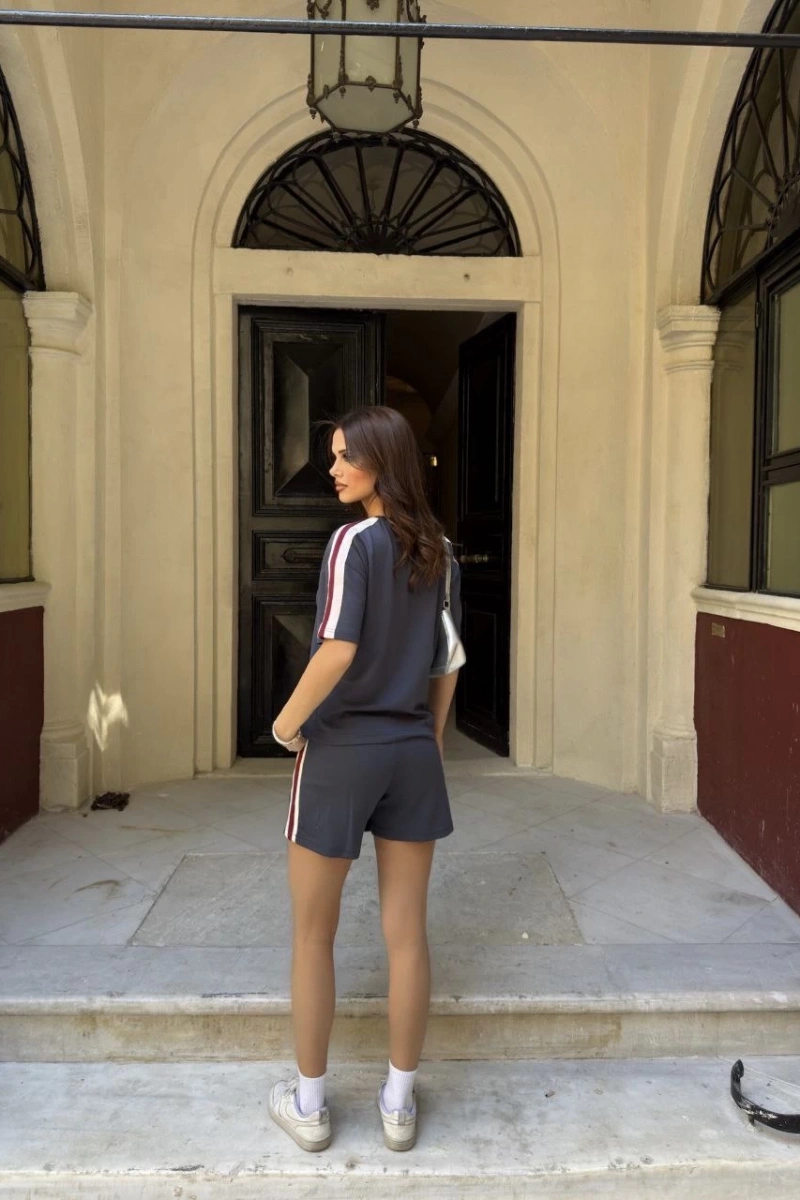 Osy Modal yumuşak dokulu Kumaş Kadın Parçalı Bisiklet Yaka T-shirt Mini Şortlu Etek İkili Takım - Füme