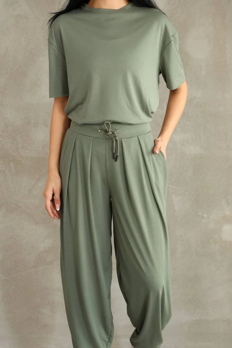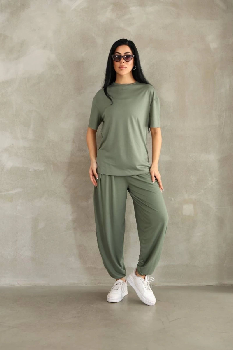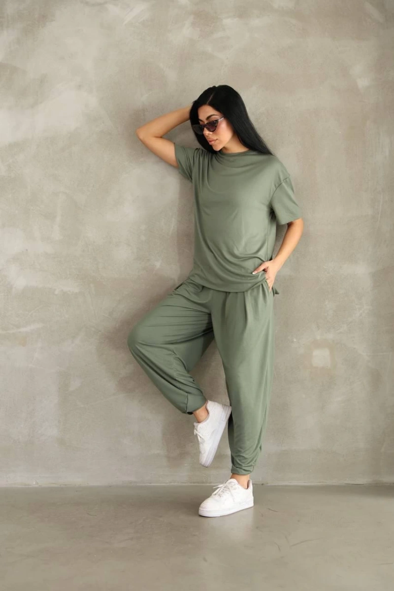 Osy Modal Yumuşak Dokulu Kumaş Oversize Bisiklet Yaka T-shirt Jogger Eşofman Altı Eşofman Takımı - Haki