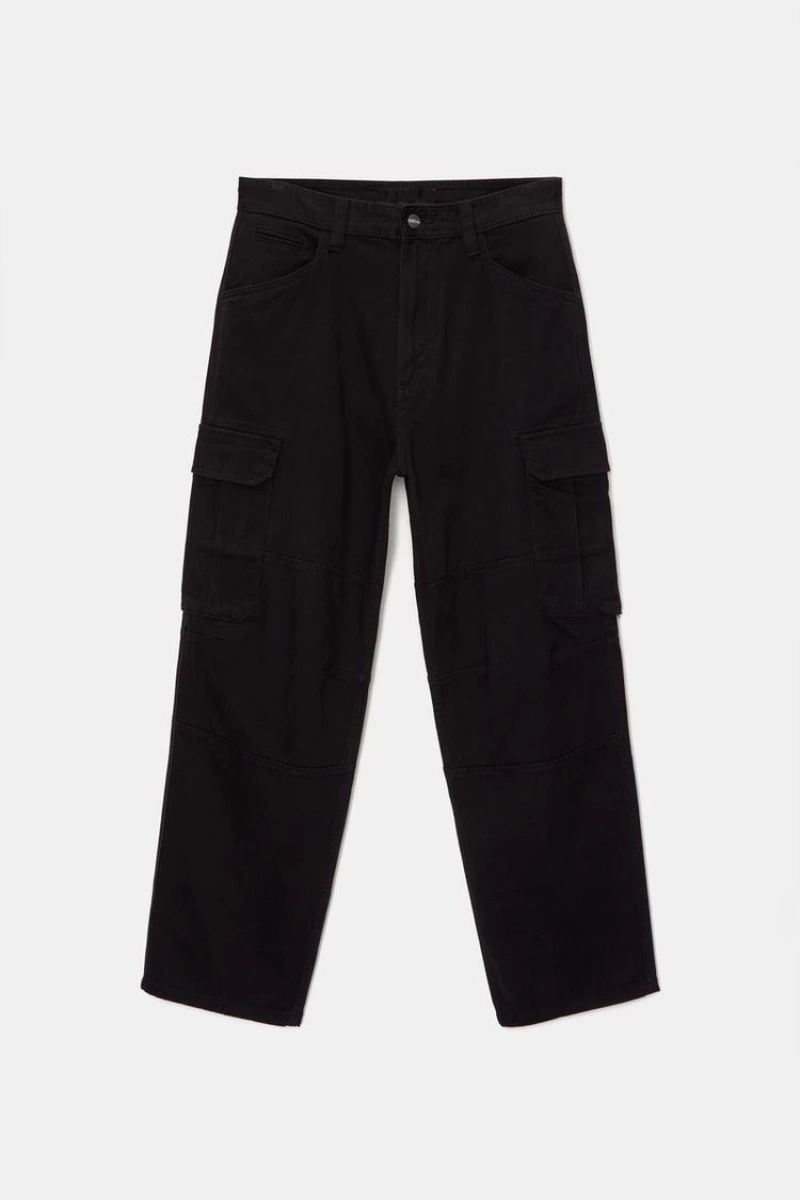 Oversize %100 Cotton Erkek Kargo Kot Pantolon Siyah