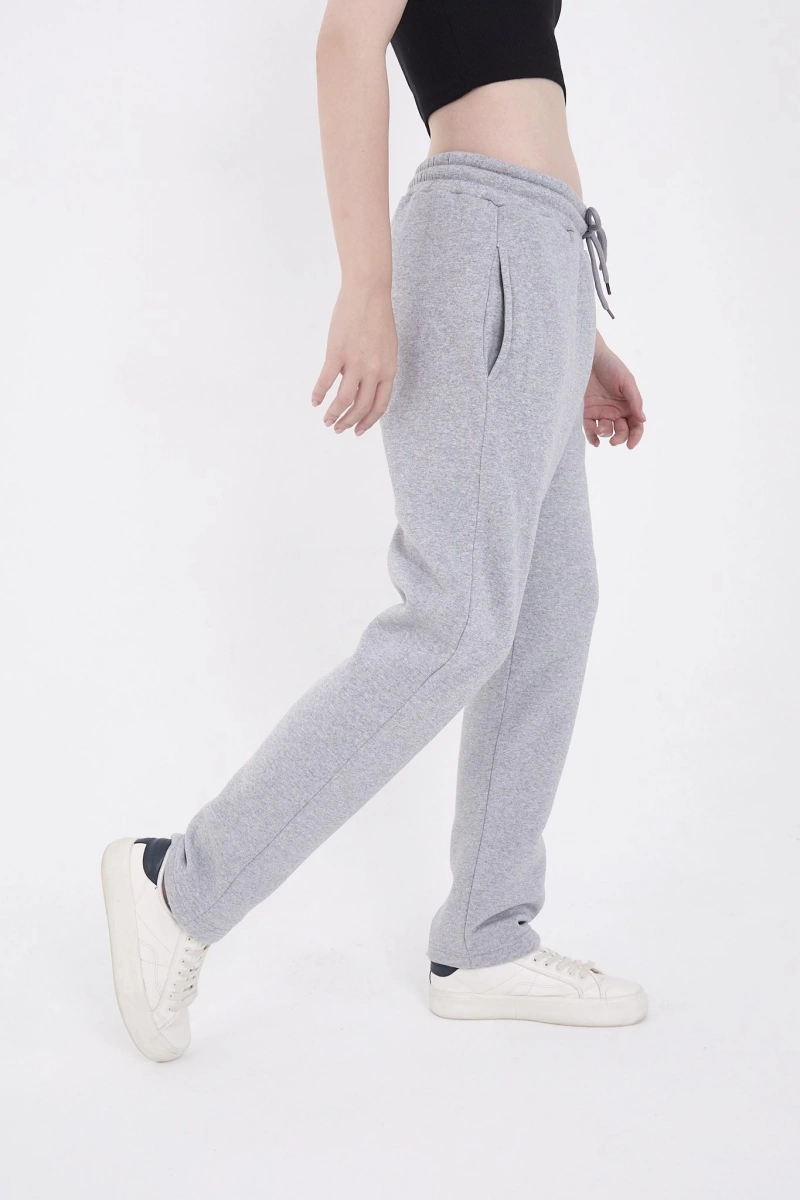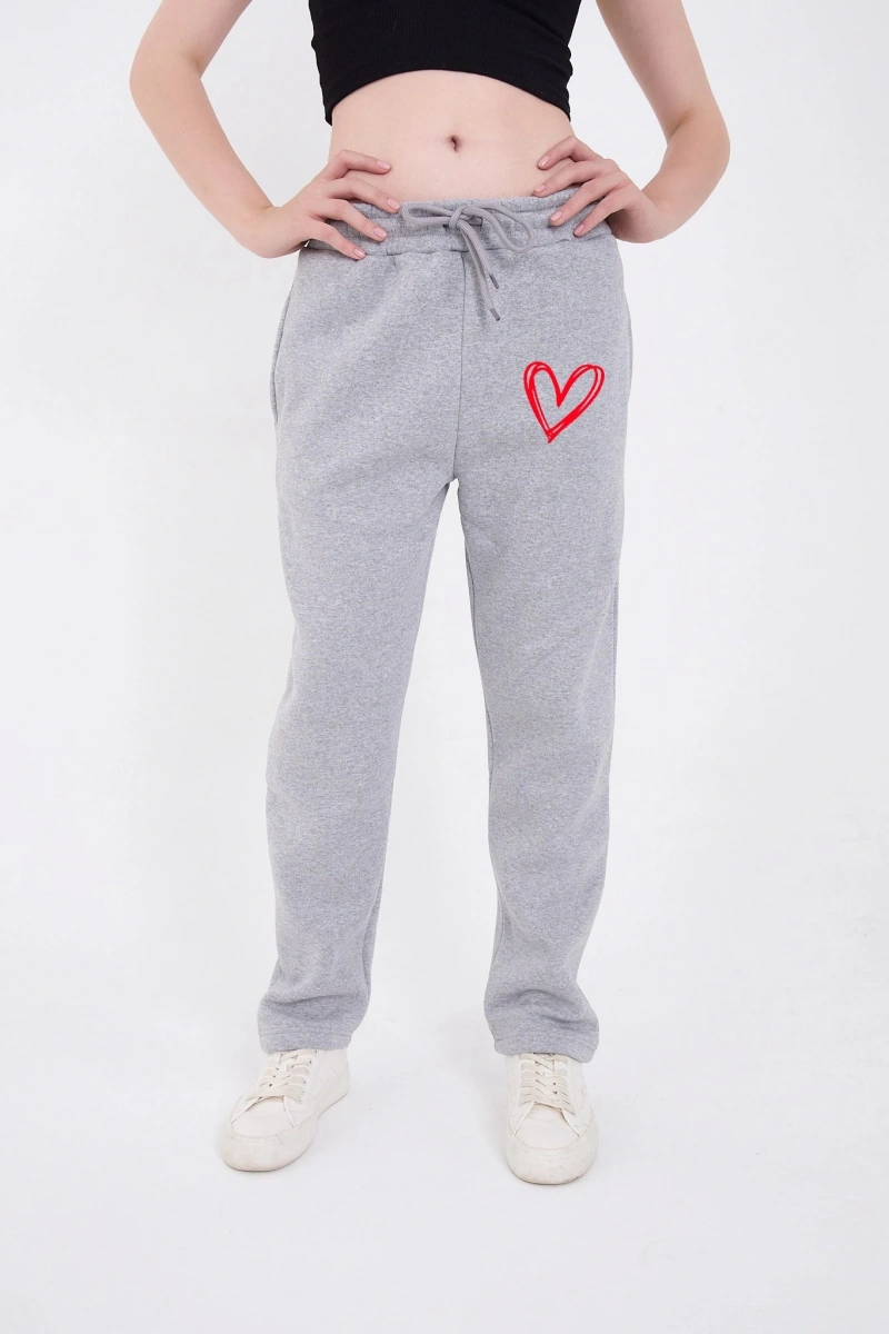 Oversize Boru Paça Baskılı Eşofman Pantolon - Gri