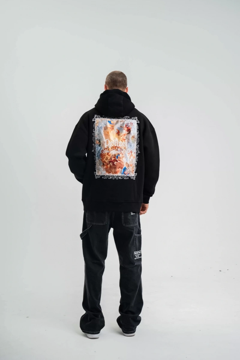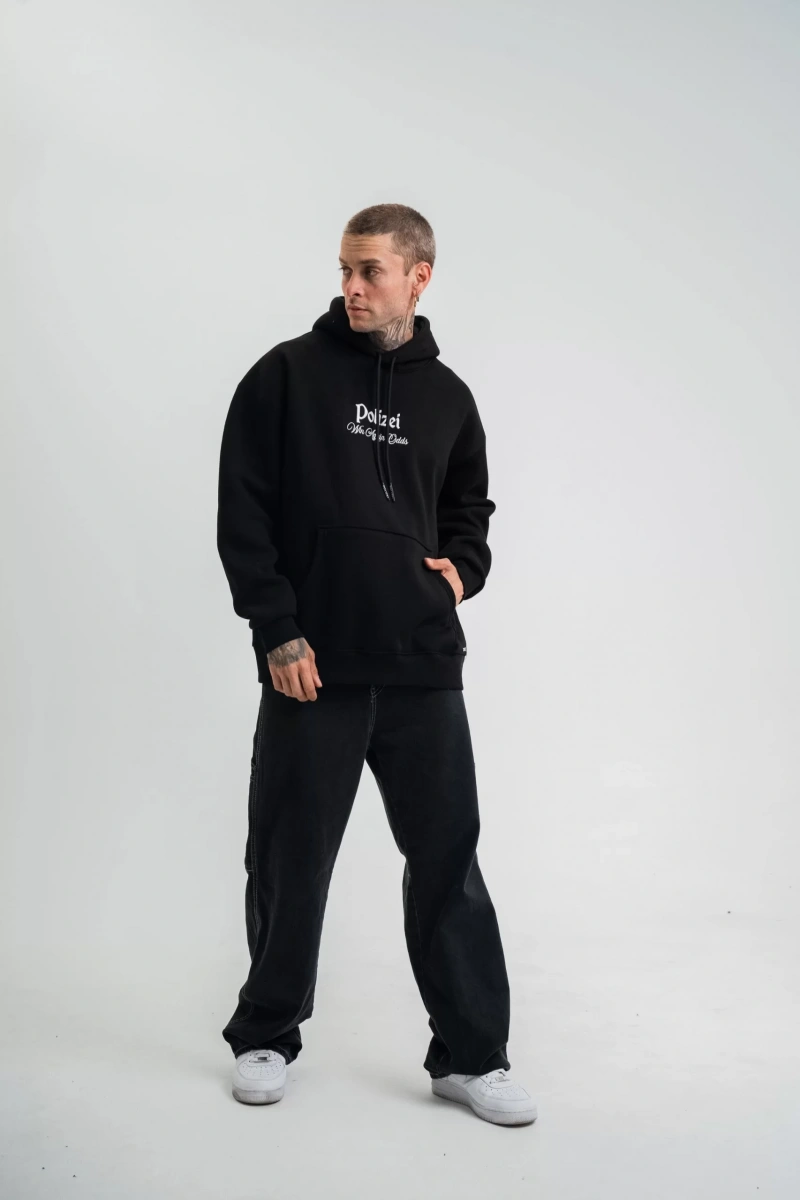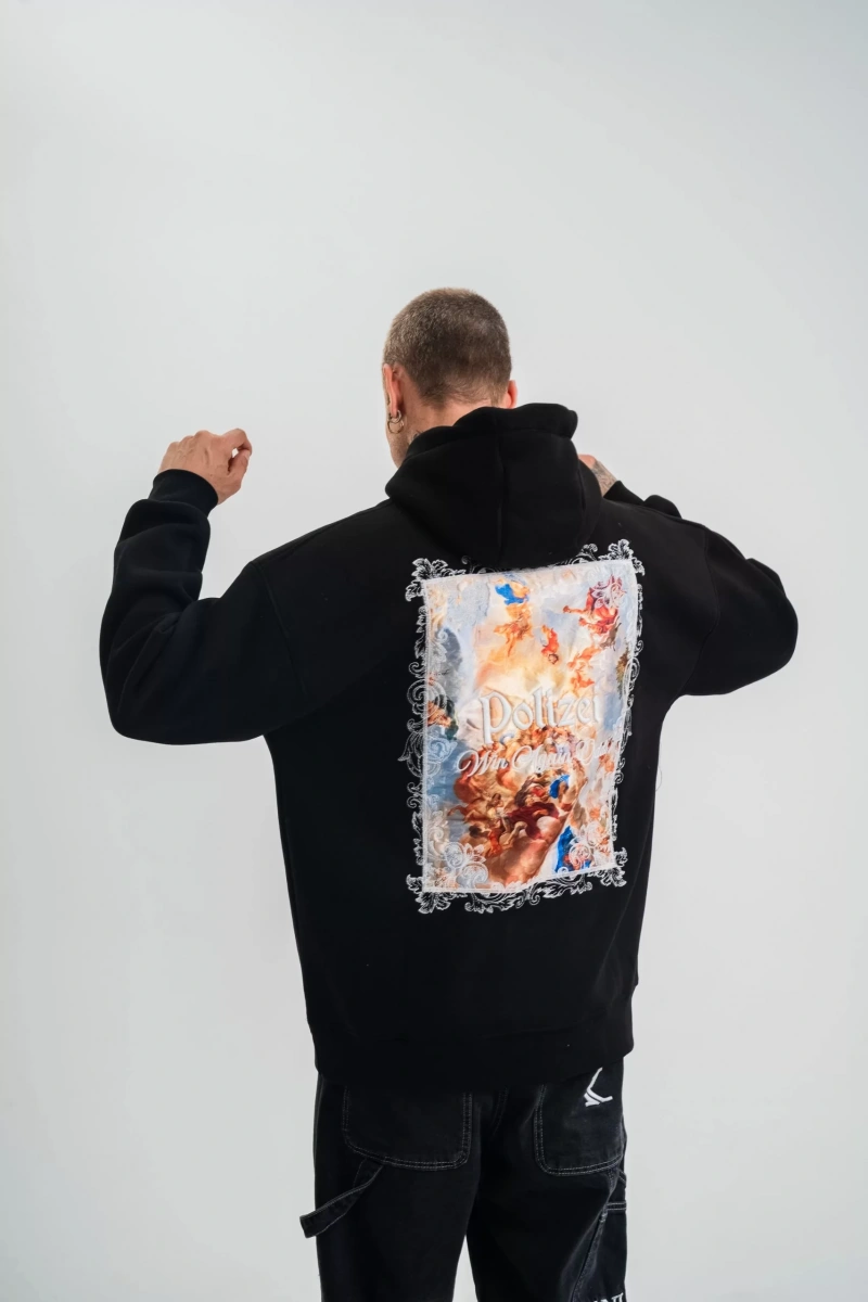 Üç İplik Kapşonlu Dijital Patchli SweatShirt - Siyah