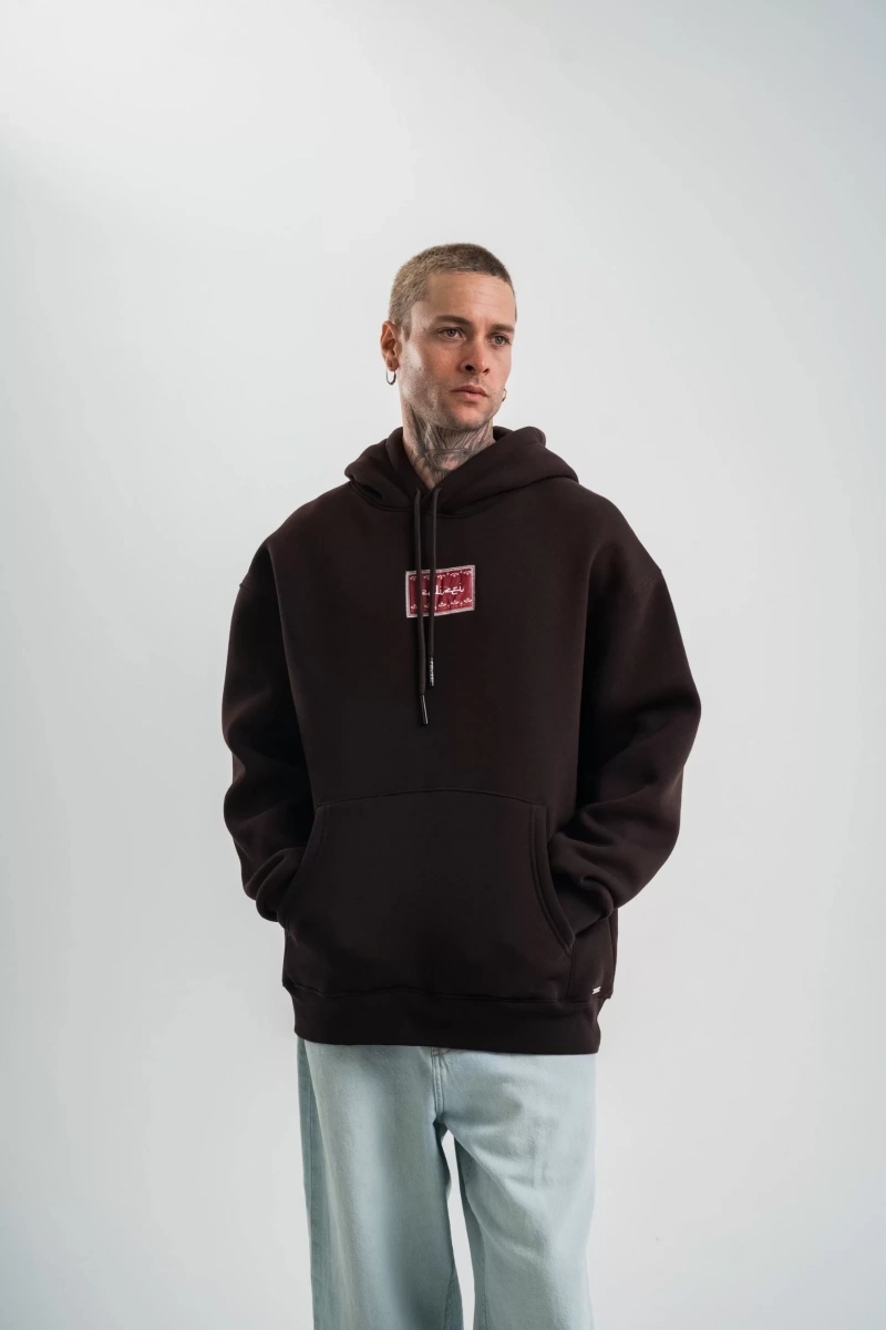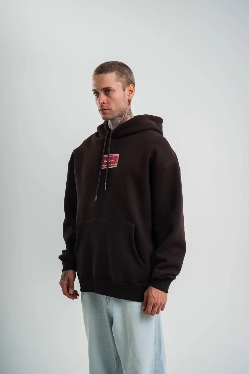Double Oversize Kapşonlu Dijital Patchli SweatShirt - Kahve