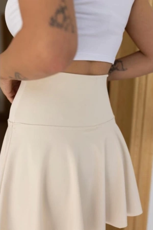 Bej Renkli Scuba Kumaş Şort Etek, günlük hayatta şıklığı ve konforu bir arada arayan kadınların tercihi olacak.
