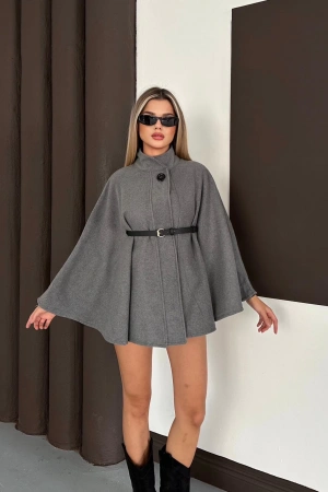 Soğuk havalarda stilinizden ödün vermeyin! Bu gri kaşe panço ceket, zarafeti ve modern tasarımı bir araya getiriyor. Kaliteli kaşe kumaşı sayesinde kış aylarında sıcak tutarken, geniş ve dökümlü kesimi ile her kombininize sofistike bir dokunuş katar.